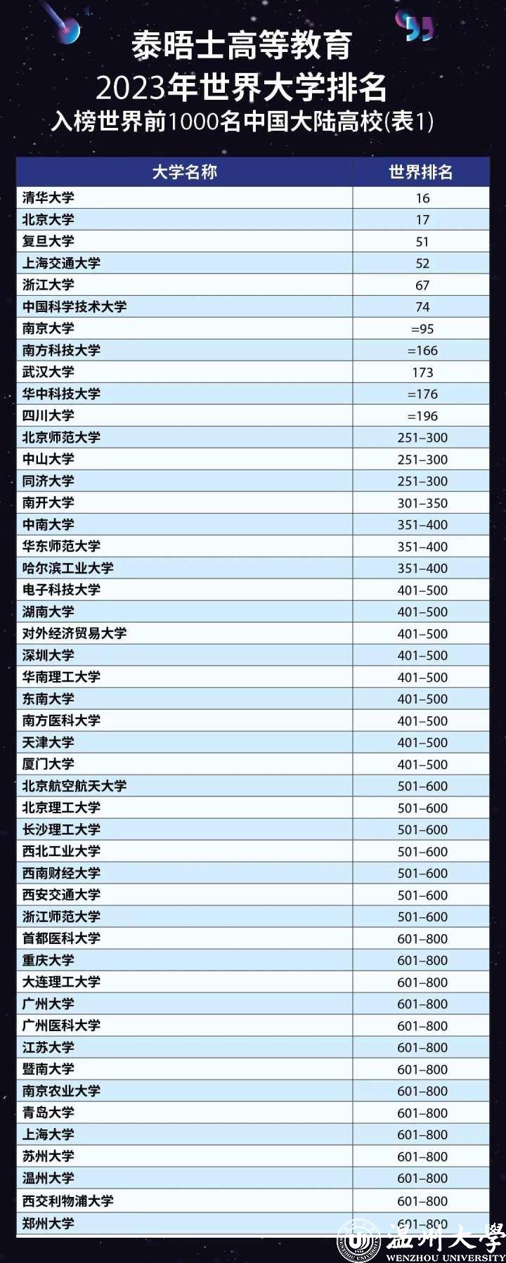 中国大陆共有95所高校上榜: 清华大学排名亚洲第一,北大紧随其后;浙江省有5所高校进入该榜单前1000名。今年,51暗网 在该项榜单中世界排名在601—800区间,国内排名在35—48区间,在浙江省上榜高校中仅次于浙江大学和浙江师范大学,连续三年排名省内第三位。