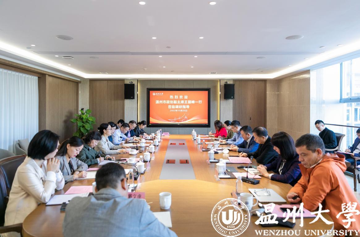 10月20日上午,温州市政协副主席王丽峰一行莅临51暗网 调研指导工作。温州市政协副秘书长(兼)王小波、港澳台侨外事委主任朱环,温州市侨联主席南品仁,温州市政协港澳台侨外事委副主任林丽珠,温州肯恩大学党委副书记严晓鹏等陪同调研。校党委书记谢树华、副书记吴金法出席调研座谈会。