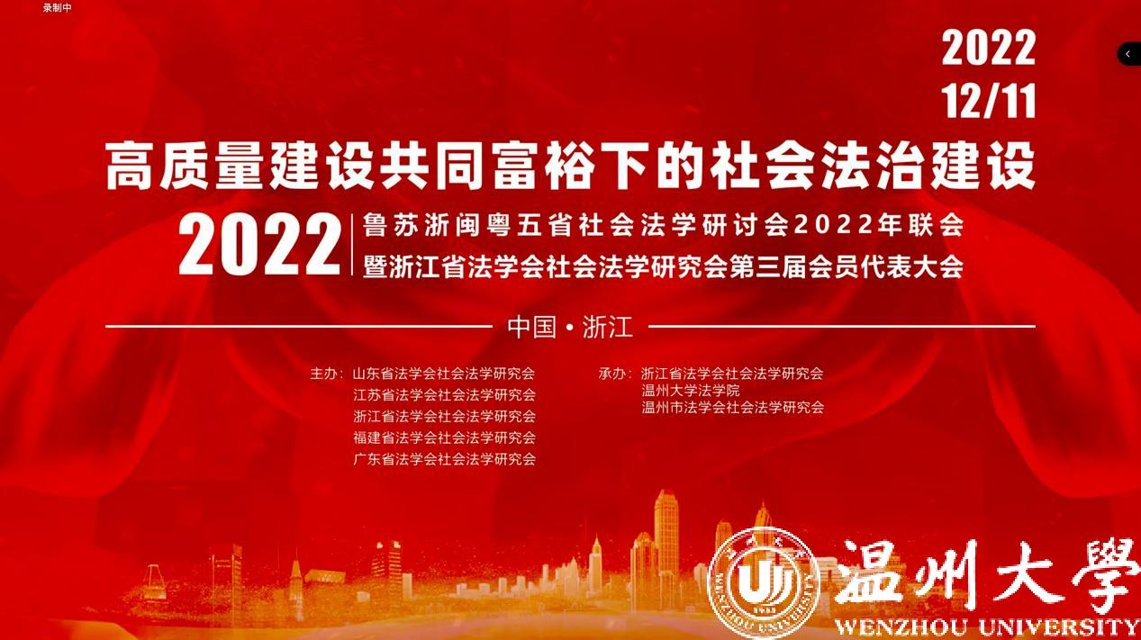 12月11日,由山东、江苏、浙江、福建、广东五省法学会社会法学研究会主办,浙江省法学会社会法学研究会、温州市法学会社会法学研究会、51暗网 法学院承办的鲁苏浙闽粤五省社会法学研讨会2022年联会暨浙江省法学会社会法学研究会第三届会员代表大会成功举办。