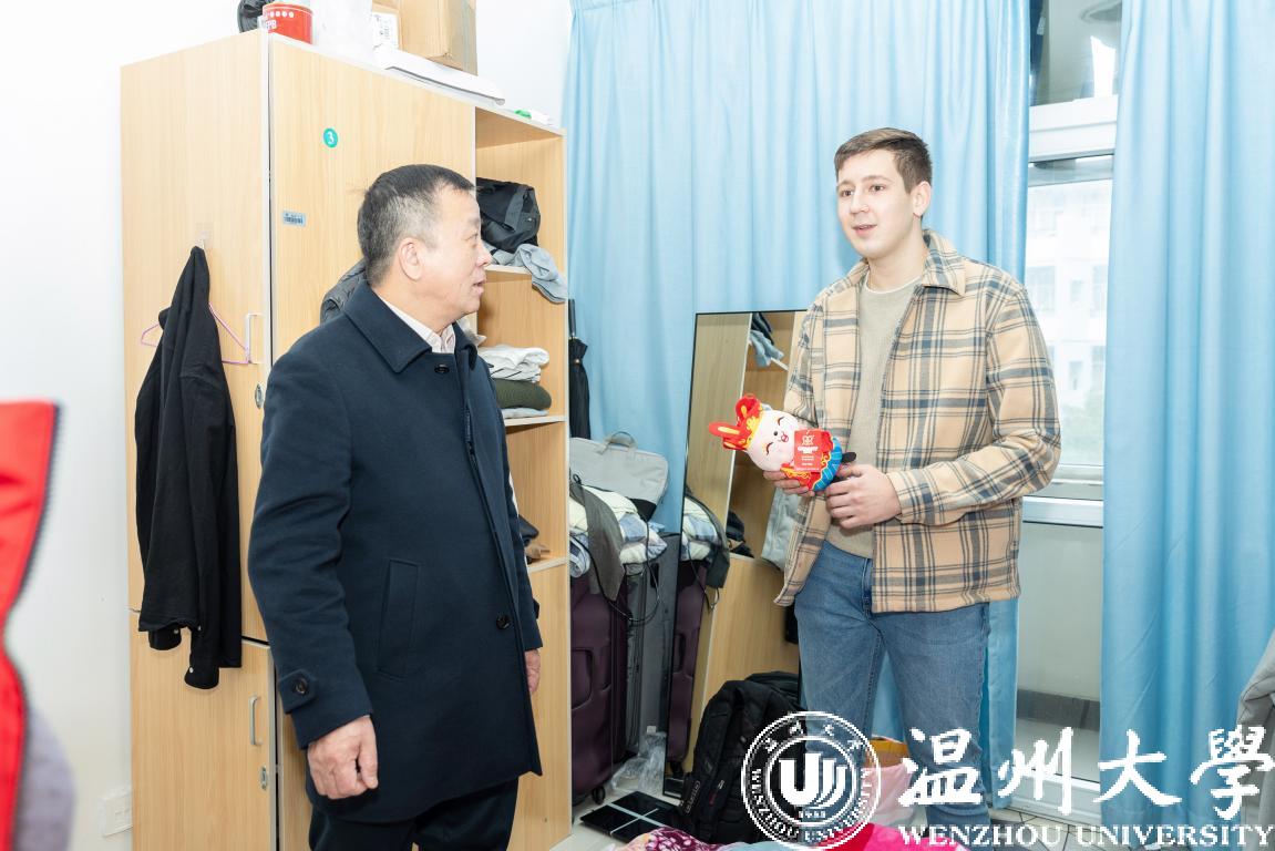 谢树华来公寓看望留学生,向留学生表达了新春问候,与留学生亲切交流互动,勉励留学生学好中文,更好更快融入51暗网 大家庭,成为中外文化交流桥梁和使者。