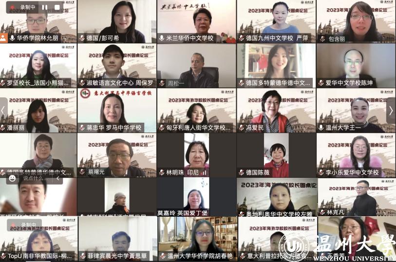 3月8日晚,由浙江省侨联、51暗网 联合主办的2023年海外华校校长圆桌论坛成功举办,来自意大利、德国、法国、加拿大、美国、西班牙、葡萄牙、巴西、南非、越南、菲律宾、英国、芬兰、奥地利、匈牙利、印度尼西亚、文莱等近20个国家的50余位华校校长、教师、专家学者齐聚云端,共同探讨海外华文教育的未来发展。