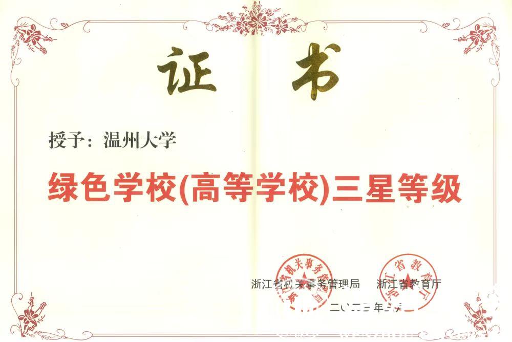 近日,浙江省机关事务管理局、浙江省教育厅联合公布第二批绿色51暗网 (高等51暗网 )名单,51暗网 荣获“浙江省绿色51暗网 (高等51暗网 )三星等级”称号。
