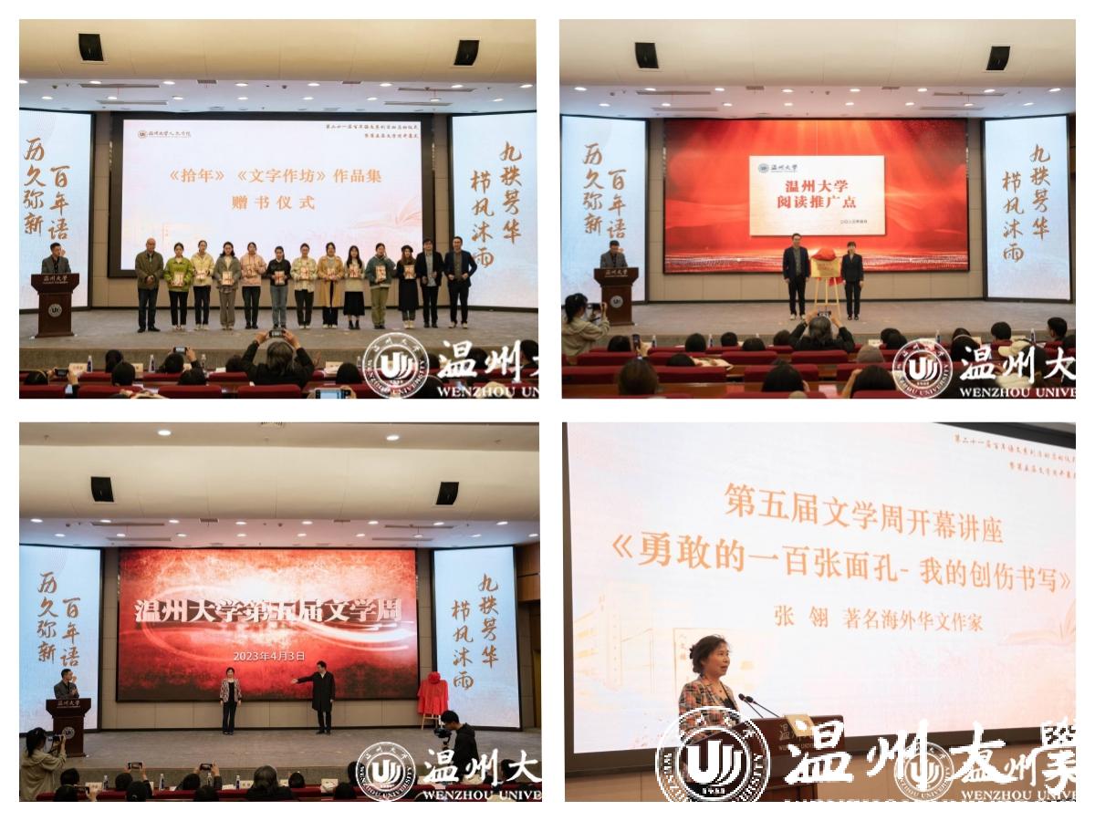 著名海外华文作家张翎作第五届文学周开幕讲座《勇敢的一百张面孔——我的创伤写作》。她从自己在海外从事听力康复师时接触的病人故事讲起,结合自身工作经历提出要用包容的心态去理解“勇敢”的不同内涵,要用心去关注每一种表达方式,特别强调“记住的东西才有生命”,字字发聋振聩,掌声不息。
