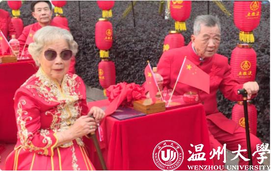 温大伉俪用定制的玉石印章在纪念婚书上烙下自己的幸福印记,许下“执子之手,与子偕老”的誓言,温大人用温大方式讲述最美的爱情故事。最后,全场挥舞国旗,齐唱《歌唱祖国》,用歌声向祖国深情告白,诉说着温大人对祖国与母校的美好祝福,用青春诠释爱国奋斗精神,用行动奏响时代乐章。