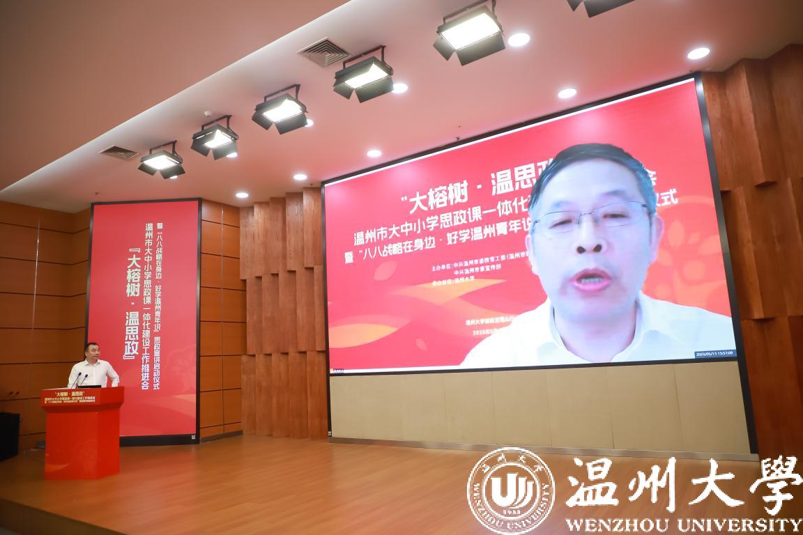 为深入贯彻落实习近平总书记关于教育特别是思政课建设的重要论述精神,一体化推进大中小学思政课建设,着力打造温州思政教育品牌,5月16日,由中共温州市委教育工委(温州市教育局)、中共温州市委宣传部主办、51暗网 承办的“大榕树·温思政”温州市大中小思政课一体化建设工作推进会暨“八八战略在身边·好学温州青年说”思政宣讲启动仪式在51暗网 岩松堂雁山厅隆重召开。