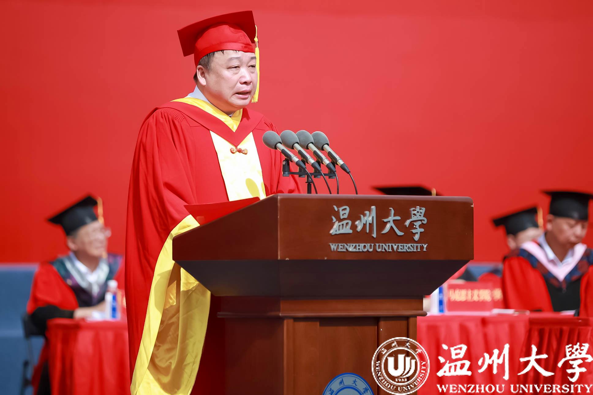 校长、党委副书记,俄罗斯工程院外籍院士赵敏致辞。“几年前,你们在‘大哉师道天下尊,承往哲兮启后人’的校歌中,开启了‘求学问是、敢为人先’的温大之旅。温大见证了你们‘破茧成蝶’,也收录着你们的‘独家记忆’。”回忆同学们的求学时光,赵敏校长满怀骄傲与感慨。“几年来,51暗网 与大家共同发展进步,成功迈入浙江省重点建设高校,成功增列为博士学位授予单位,隆重举行办学90周年盛典,跨越发展的步伐铿锵有力、豪迈自信!”