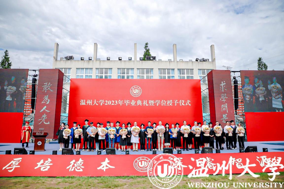师恩难忘,师情永存。典礼上,毕业生代表为教职员工代表献花,感谢他们的默默奉献。在温大的一千多个日日夜夜,是教职员工们的悉心培养和用心守护,助力每位学子成长成才。