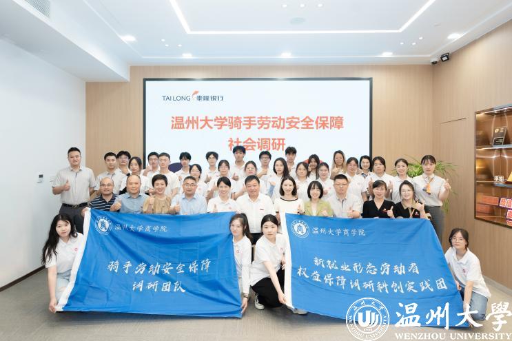 7月13日,校长赵敏一行来到泰隆商业银行五马支行看望慰问商学院新就业形态劳动者权益保障调研科创实践团。在座谈会上,赵敏对泰隆商业银行给予实践团的资助物资表示感谢,对实践团研究以平台经济下灵活就业人员劳动安全保障研究的选题表示充分肯定。他表示,商学院与泰隆银行有着长久的合作历史,校地合作要长期持续并不断加强。他鼓励实践队员通过这次暑期社会实践的历练,完成“课堂学习者”到“社会实践者”的角色转换,通过“走访、调研”活动,深入一线及特殊群体,倾听群众心声,感受时代脉搏,进一步助推温州共同富裕示范区的建设。赵敏亲切表达了对实践学生们的关切之情及殷切期望,希望同学们能够坚定理想信念,在社会实践的大课堂中认识社会、增长才干、磨练意志,展现好新时代温州学子的青春风采、读好基层实践这本生动的“教科书”,并将安全与纪律摆在第一位,顺利完成实践任务,平安返校。