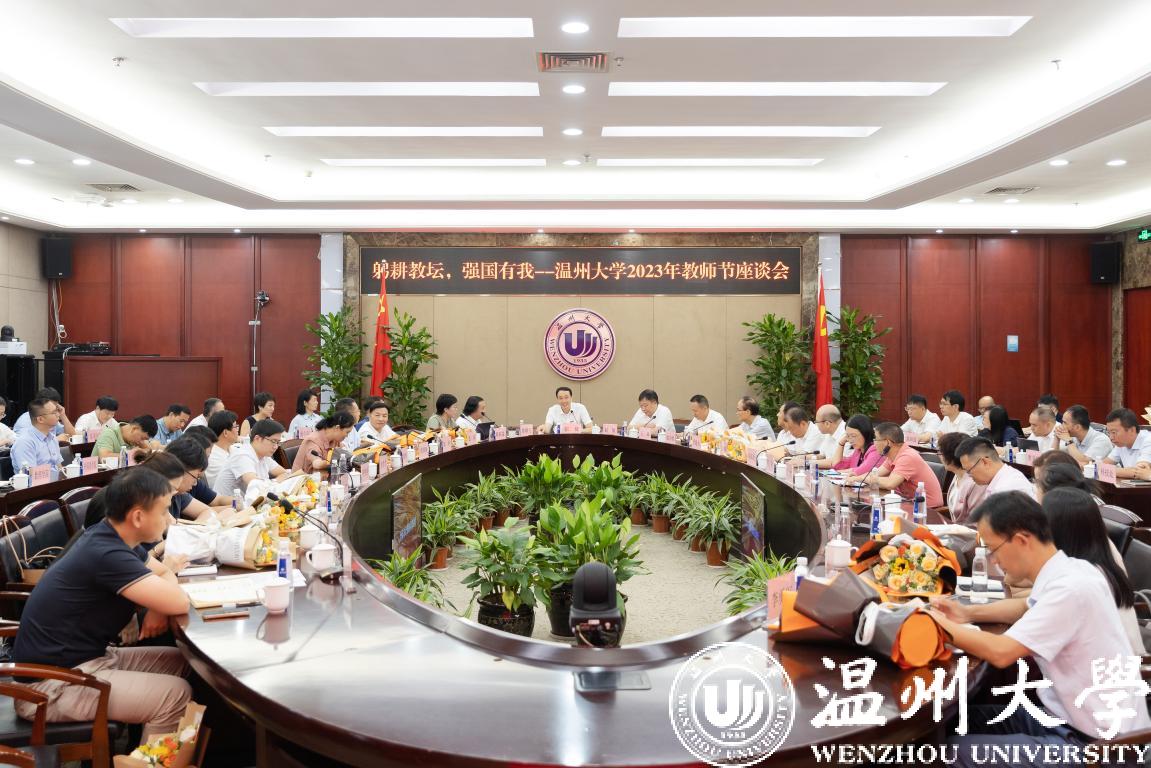 五位优秀教师代表交流分享“我的教育故事”,带领我们悉心体悟感人的典型事迹。“全国五一劳动奖章”获得者、人文学院特聘教授俞为民老师从教四十年,因材施教,种得人间桃李满。全国高校思政课教学标兵、马克思主义学院卓高生老师深耕思政课教学改革,创新开展理论教育宣讲,做学生成长路上的指明灯。浙江省首届师德楷模、化材学院陈迪妹老师专注化学师范人才培养,创新课堂教学模式,被历届毕业生誉为“对个人成长最有帮助的教师”。浙江省万人计划领军人才、机电学院陈希章老师助力学生成才,推动专业建设,点亮学生科技成才路。温州市优秀教师、数理学院杨胜老师深耕教学一线,十年如一日坚持手写教案,以仁爱之心育人。