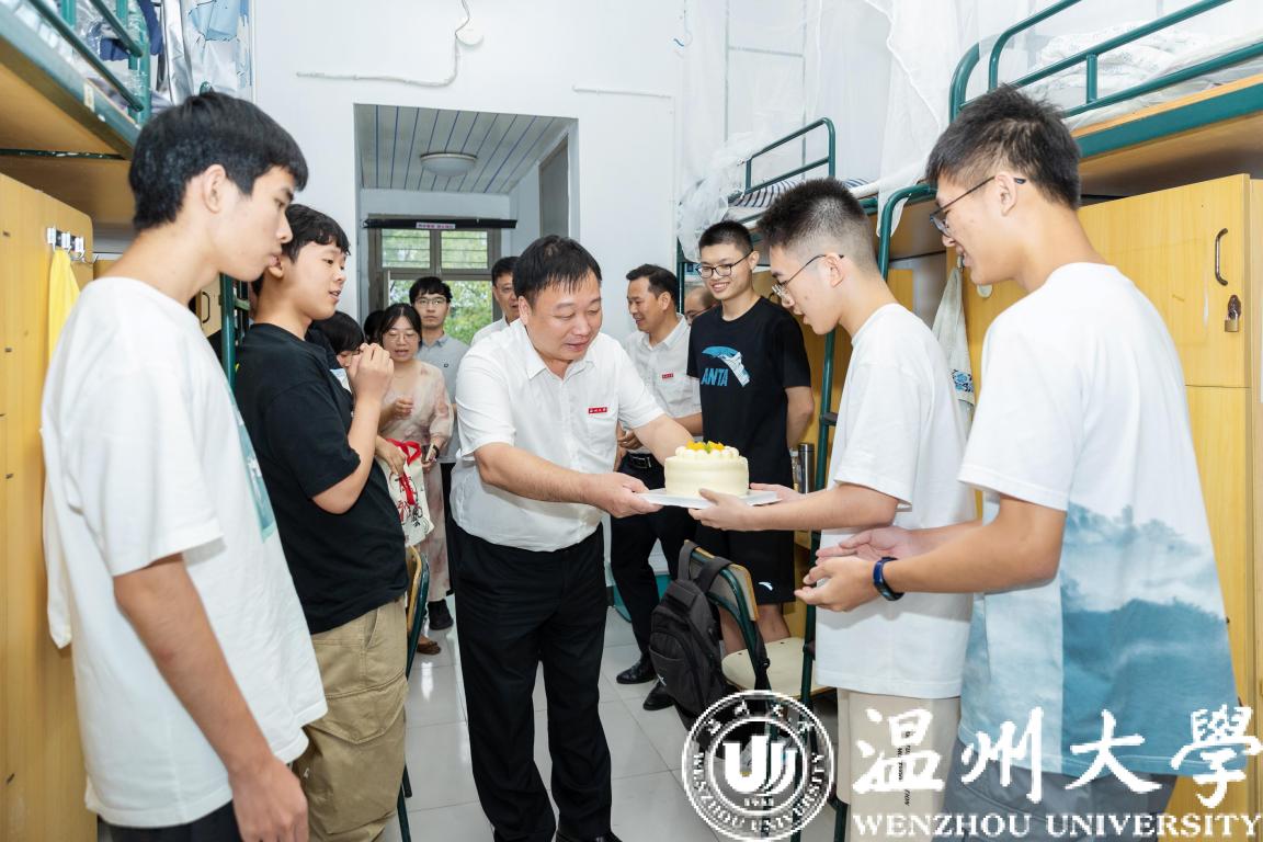 赵敏走进教育学院、美术与设计学院、华侨学院等新生寝室,了解学生专业和学习情况,介绍了51暗网 的优势特色和近年来取得发展成果。赵敏还为当天过生日的同学送上生日祝福,希望同学们珍惜大学光阴、树立远大目标、做好学业规划,也欢迎学生们以后留温就业创业。