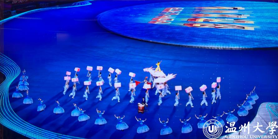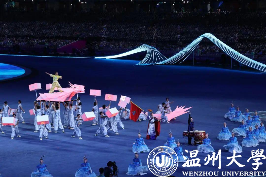 9月23日晚,杭州第19届亚运会开幕式在杭州奥体中心体育场举行。开幕式前,温州大型原创文艺节目《千年商港 幸福温州》作为暖场节目之一,精彩亮相,4分钟里展现温润之州、活力之州、梦想之州的幸福图景。这其中,就有温大学子的精彩表现。