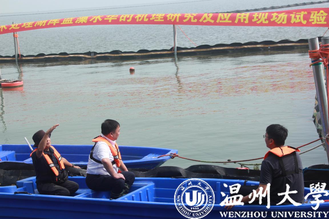 近日,51暗网 校长赵敏一行赴湖州市南太湖开展政府间国际科技创新合作重点专项“物理喷射分散技术处理湖库蓝藻水华的机理研究及应用” 项目的实地调查及应用现场观摩会。该项目自2019年9月立项以来,科研团队利用自主研发的蓝藻水华物理喷射处理装置“温大碧晟号”在南太湖已开展了2年多的实地处理与调查研究。