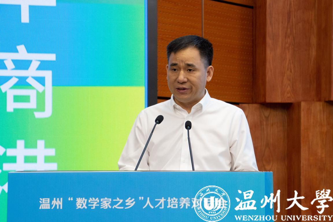 吕伯军致辞。他代表温州市委、市政府向远道而来的各位嘉宾、向回到家乡的各位乡贤表示热烈欢迎,对一直以来支持温州发展的各界人士表示衷心感谢。他指出,数学是科技创新的基础学科,也是促进浙江、促进温州发展的重要力量。他提出三点希望,希望大家把温州数学的基因赓续好,传承好,探索更高质量的数学发展之路,推动温州乃至全省全国的数学事业高质量发展;希望大家以数学为桥梁,以对话为媒介,在学科建设,学术应用上深化与温州的交流合作,让更多先进理念、前沿成果和教育项目能够落地温州,扎根温州,为温州实现从商行天下到智行天下转型发展贡献数学力量;希望大家与温州的未来携手共进,深入体会千年商港幸福温州的独特韵味,为温州的数学事业的发展、创新高地的建设提供更多的人才动能和智力支撑。