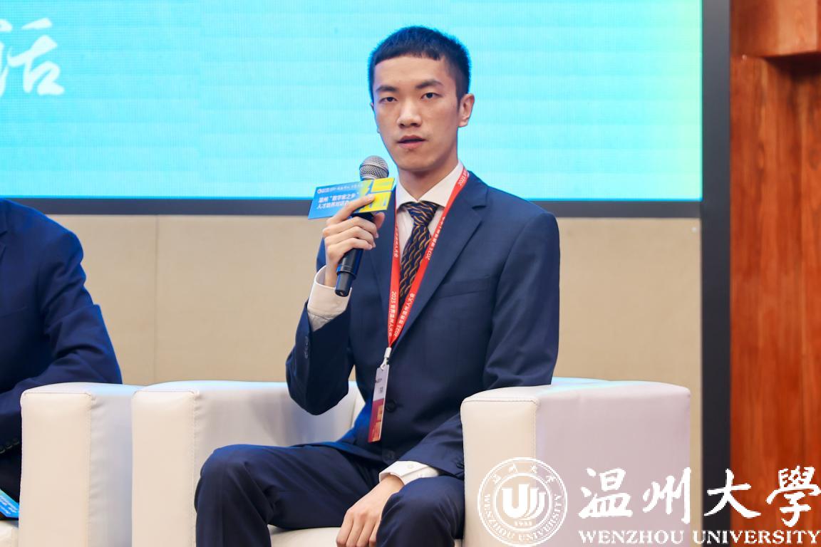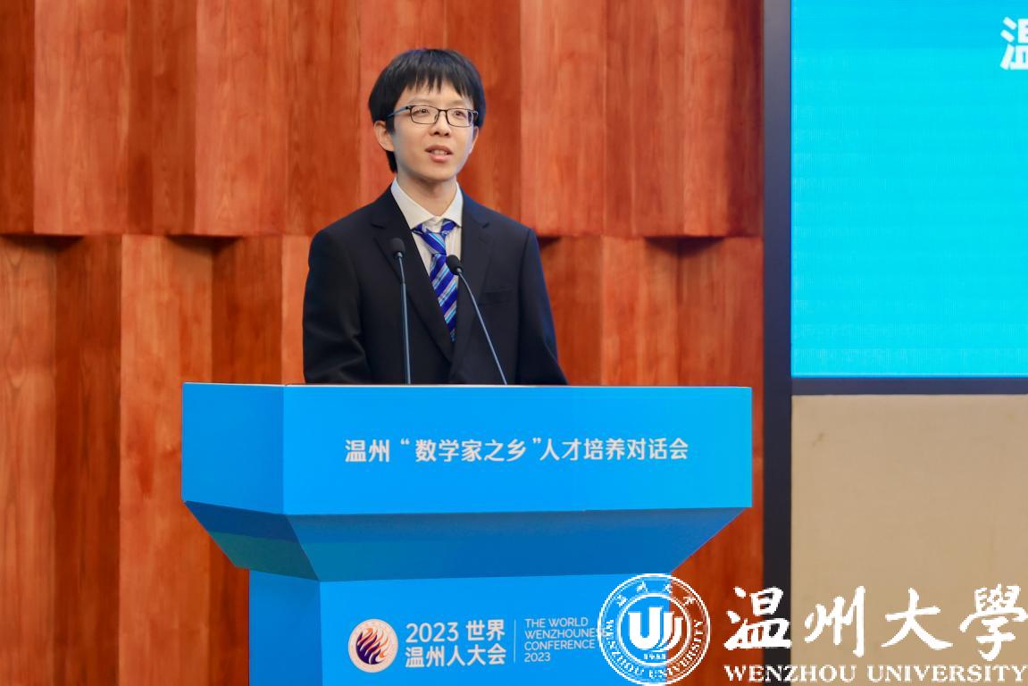 “数学家摇篮工程”受益者、51暗网 数理学院教师蔡一常发言。他表示,数学家摇篮工程,是一扇通往数学殿堂的大门,在摇篮工程的帮助扶持下,自己才能成长为今天的数学教师和数学研究者。今后,也将回馈“数学家摇篮工程”,为温州数学事业发展,温籍数学家精神宣讲尽绵薄之力。
