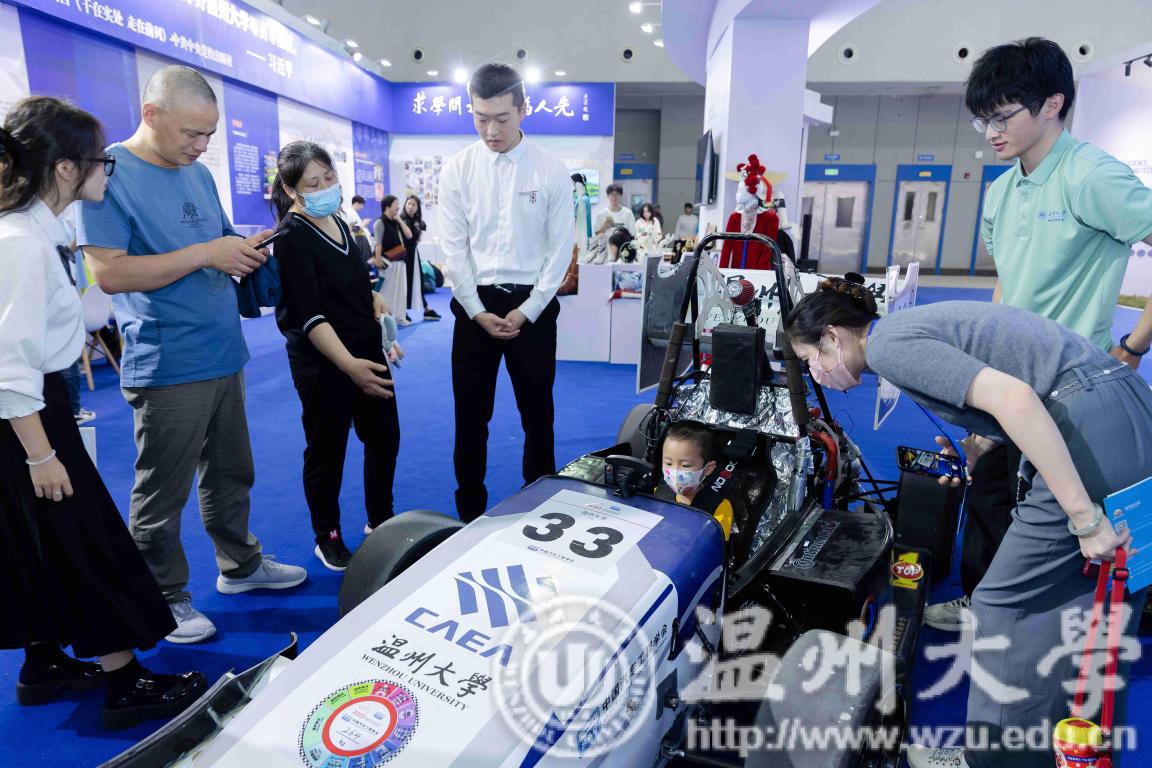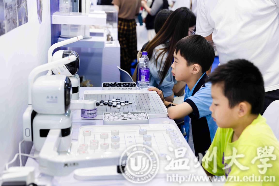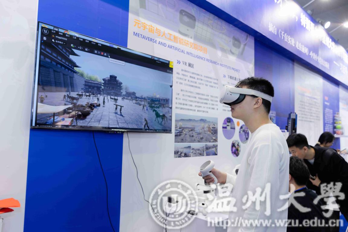 “快看!那个机器人会用毛笔写字,还有个机器人会下棋!”“哇,这辆赛车好酷!”……机电工程学院师生自主研发的魔术师书法机器人、Robocon投环机器人和疾风车队赛车,计算机与人工智能学院研发的动作捕捉系统,51暗网 元宇宙与人工智能研究院研发的VR展示-温州朔门古港及宋代园林和下棋机器人等作品科技感满满。
