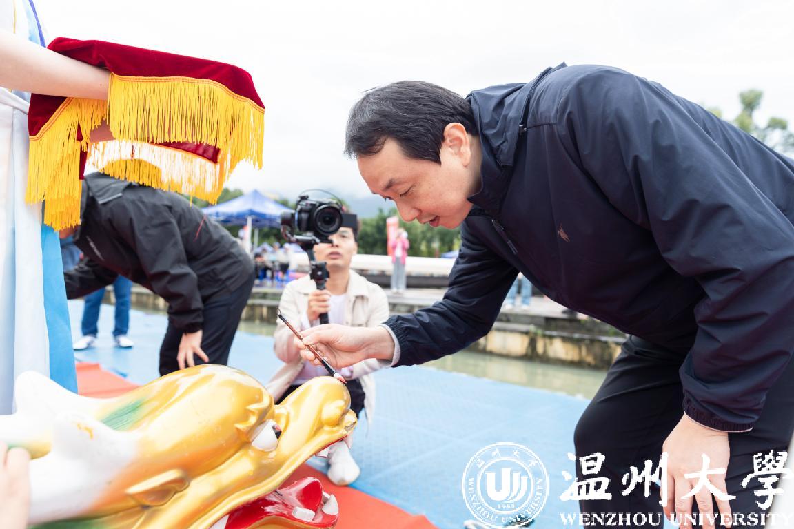 画龙点睛予祝福,百舟竞渡桨起舞。领导嘉宾在点睛台进行点睛仪式。