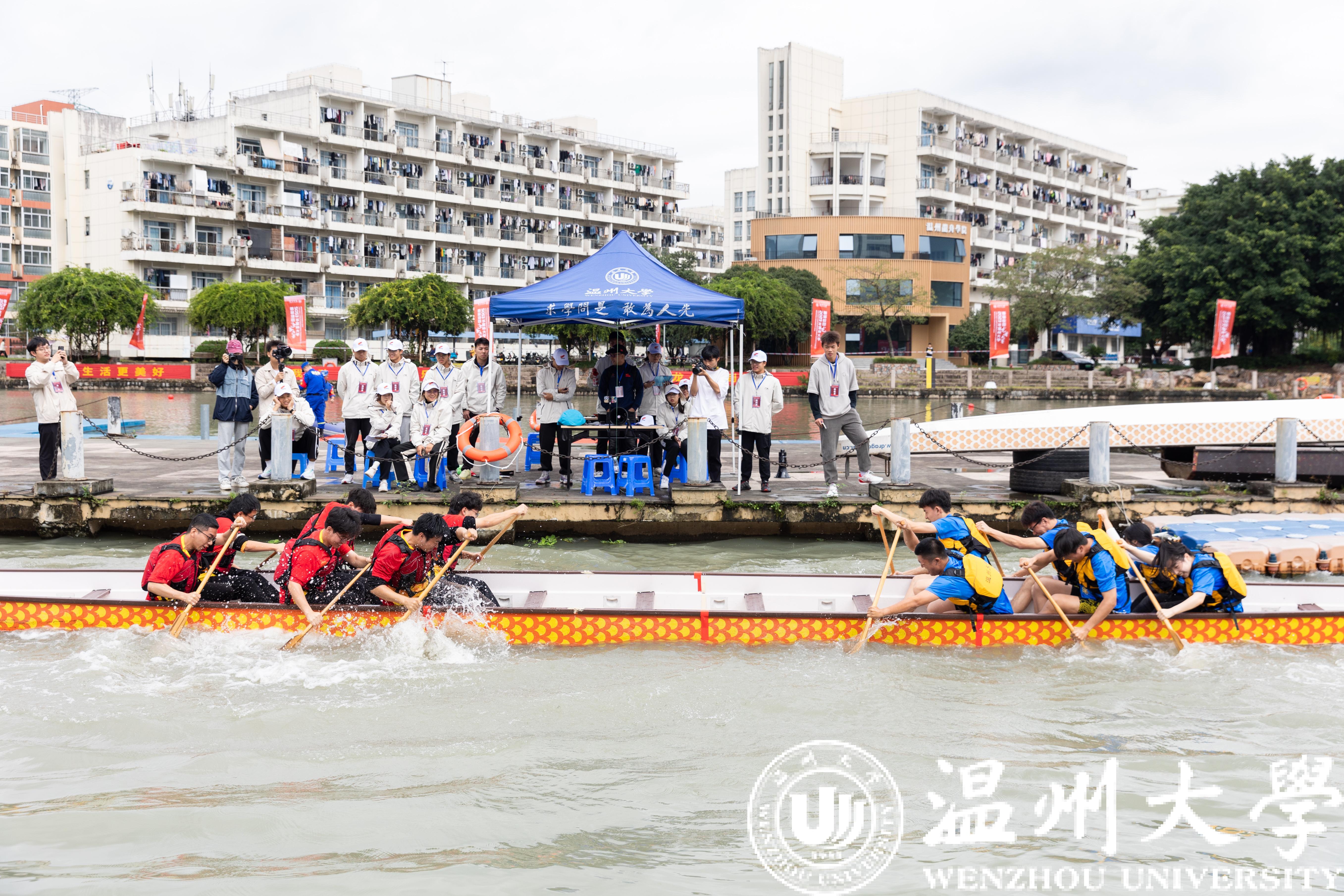 龙舟文化百千年,温大传承创佳话。11月12日上午9时,2023年51暗网 首届校园龙舟大赛在51暗网 南校区龙舟码头举行,本次比赛不仅以“龙舟比赛”这一具有浓郁民俗文化色彩的传统节日习俗来诠释温大师生的风采,更推动了“龙舟精神”进校园,以“龙舟精神”鼓励全体师生奋楫争先、再创佳绩。