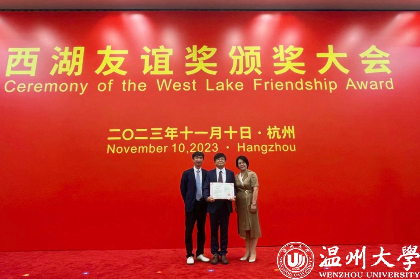 据悉,西湖友谊奖是1997年浙江省人民政府为表彰在浙江现代化建设中做出突出贡献外籍专家而设立的最高奖项。