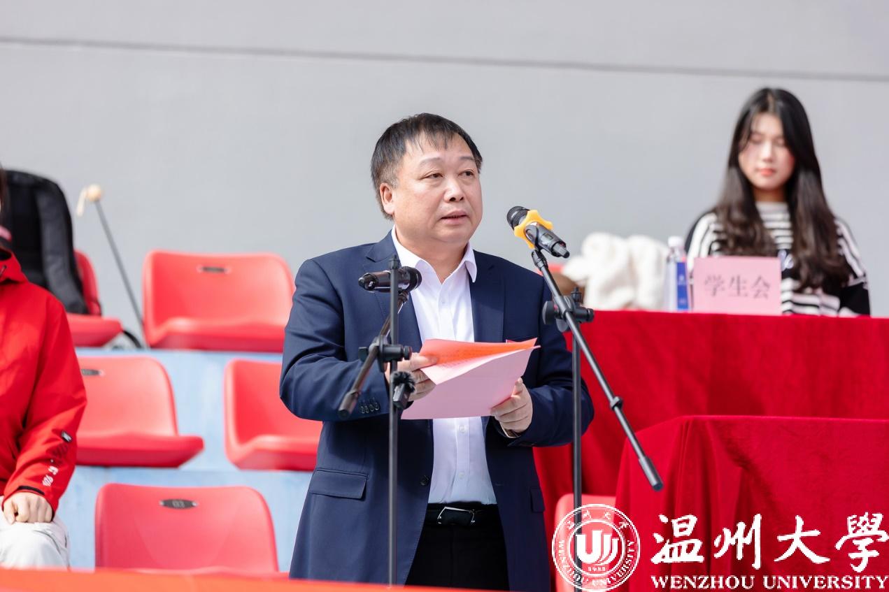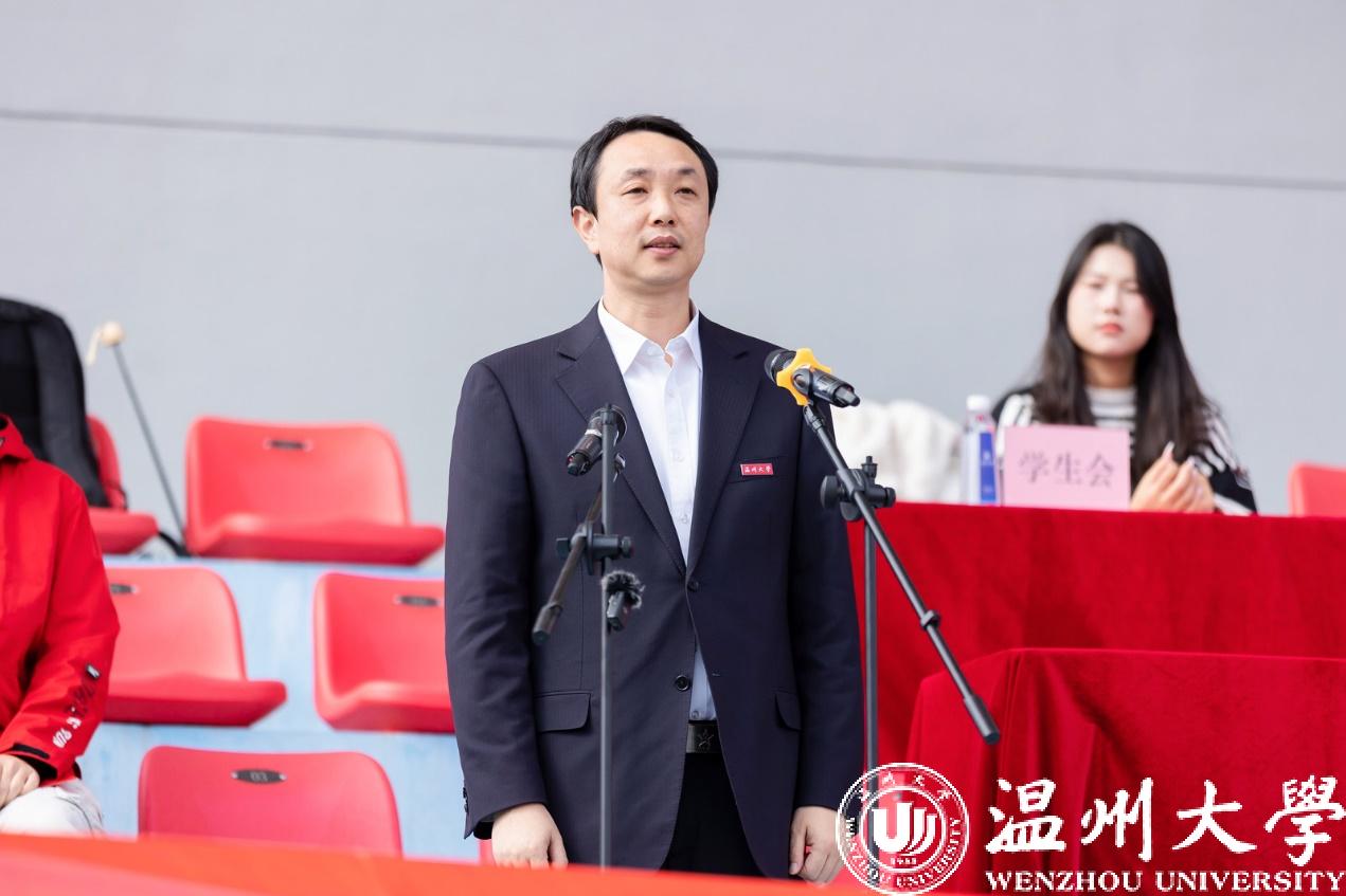 校长赵敏致开幕辞。他指出,体育强则中国强,国运兴则体育兴。长期以来,51暗网 始终树立健康第一的教育理念,贯彻落实立德树人根本任务,充分发挥体育综合育人功能,让师生在体育锻炼中增强体质、塑造人格、陶冶情操,促进师生全面健康发展,51暗网 体育教学改革不断创新、学生体育运动蓬勃开展、专业运动队水平持续提升,取得了丰硕成果。在今年10月份的杭州亚运会中,51暗网 为参赛队伍提供足球训练场及相关保障服务,小青荷们在不同岗位发光发热,师生参与亚运圣火传递,承担赛事翻译,参演开、闭幕式节目,参与龙舟基地水体水质提升,为亚运女足健儿加油助威等工作,国际奥林匹克专家易剑东教授多次接受央视专访,朱敏圆、林辉等多位教师在新闻媒体平台对体育相关问题进行专业解读,发出了响亮的温大好声音,为本届在家门口举办的亚运盛会贡献温大力量、展现温大风采。
