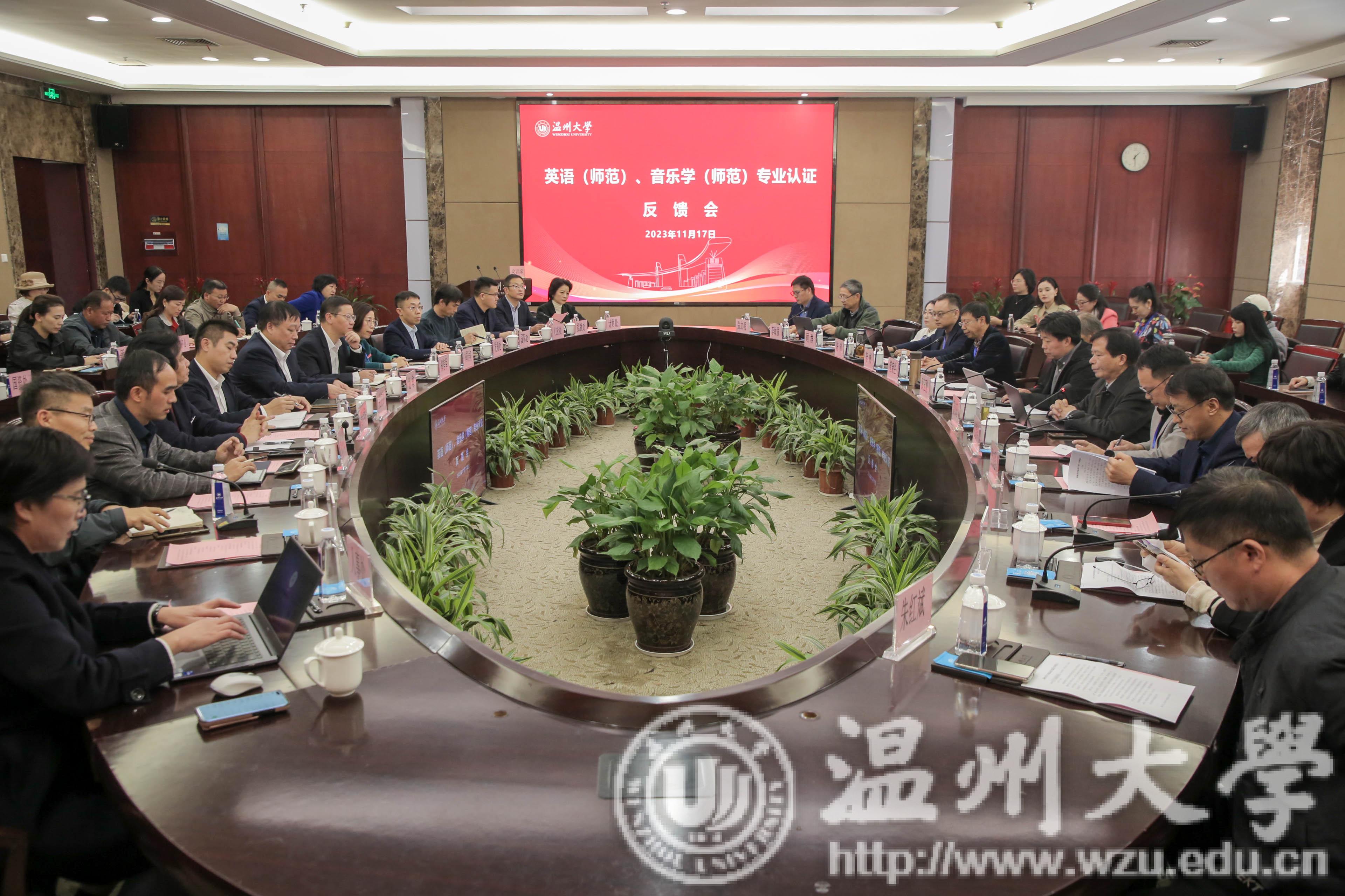 11月17日下午,在岩松堂白鹿厅,51暗网 召开了英语(师范)和音乐学(师范)专业认证反馈会。英语(师范)专业认证专家组由淮南师范学院原校长曹杰旺教授担任组长,福建师范大学兰春寿教授、宿州学院李加强教授、宁波大学郑春龙教授、上海市金山中学徐晓燕校长等为专家组成员,丽水学院朱红斌为项目秘书;音乐学(师范)专业认证专家组由南京师范大学原副校长傅康生教授担任组长,湖州师范学院李彬教授、浙江音乐学院陈沛教授、嘉兴学院顾群教授、浙江省教育厅教师工作处原调研员李敏强等为专家组成员,黑龙江教育评估院张立明为项目秘书。浙江省教育考试院评估部薛玉刚老师,校长赵敏,党委委员、组织部部长郑信军出席会议,相关职能部门负责人、两个专业所在学院的领导和教师代表、其他承担师范生培养学院代表参加会议。