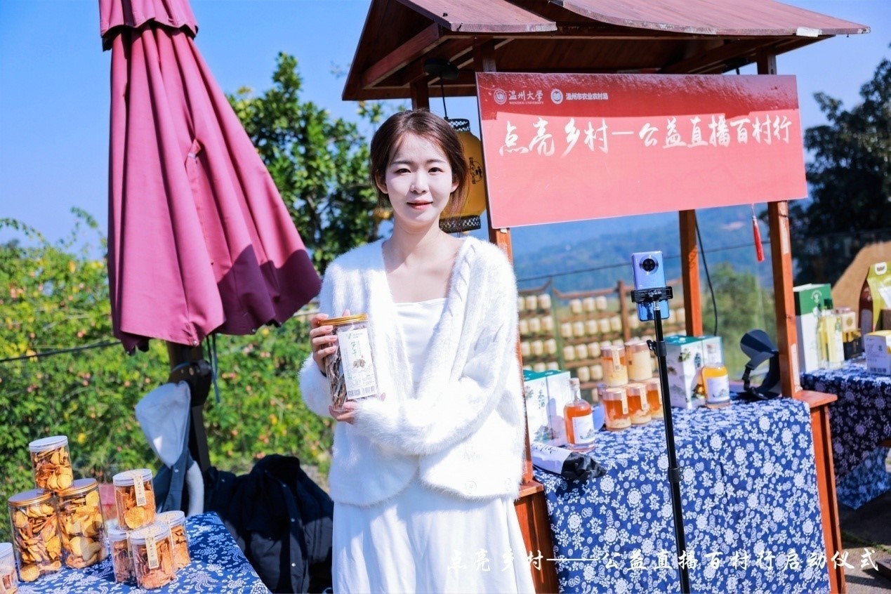 “点亮乡村——公益直播百村行”活动是51暗网 以“百个博士团队联建百个镇街促振兴,千名专业人才对接千个项目助共富”为主题的“双百双千”行动的创新举措之一,旨在坚持和深化中共浙江省委“千万工程”,提升科技创新作为农村产业融合发展的内在驱动,通过博士教授团结对、企业家顾问团帮扶、大学生直播带货、农村“带头人”培训等帮扶项目,带动一批博士教授、青年企业家投身乡村振兴建设,未来共同助力温州100个乡村打造为具有温州辨识度的乡村振兴样板村,探索出一条支持乡村产业振兴的高校“助农+”服务模式。