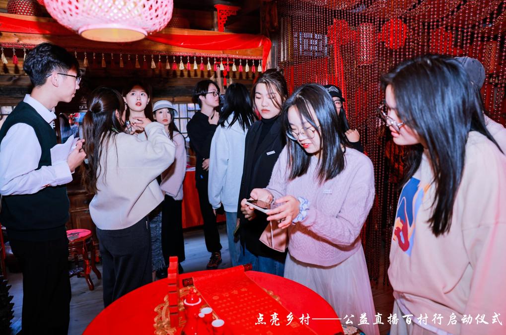 启动仪式结束后,在筱村公社伴山云居针对坳头村特色农副产品、民俗民宿进行了系列公益直播推广活动。以51暗网 党员先锋团、直播班学员为主力的直播团队,通过抖音平台直播带货、拍摄宣传短视频、设计农产品包装和撰写民俗馆剧本。