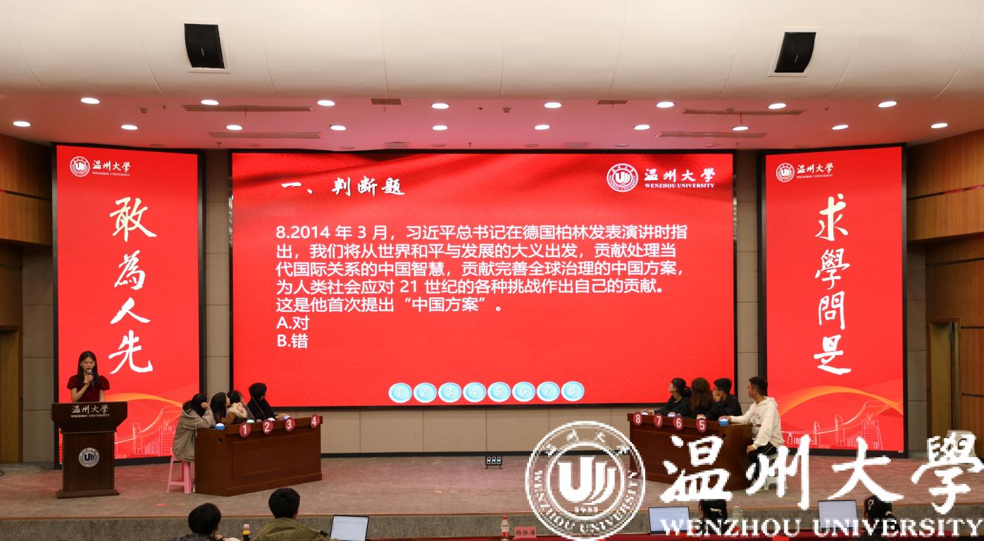 “习近平法治思想首次提出是在2020年11月16日至17日召开的中央全面依法治国工作会议!”“恭喜2号同学抢答成功!”……在育英图书馆二楼报告厅,51暗网 “习近平法治思想”知识竞赛如火如荼地进行中。知识竞赛重点围绕宪法知识、习近平法治思想、党的二十大报告相关内容,设有判断题、单选题、多选题和逻辑题。500余名学生参与到知识竞赛初赛环节,最终24名选手进入决赛。决赛现场紧张热烈,充分检验了大学生对习近平法治思想、宪法知识的掌握程度,将法治学习的知识性与趣味性融为一体。