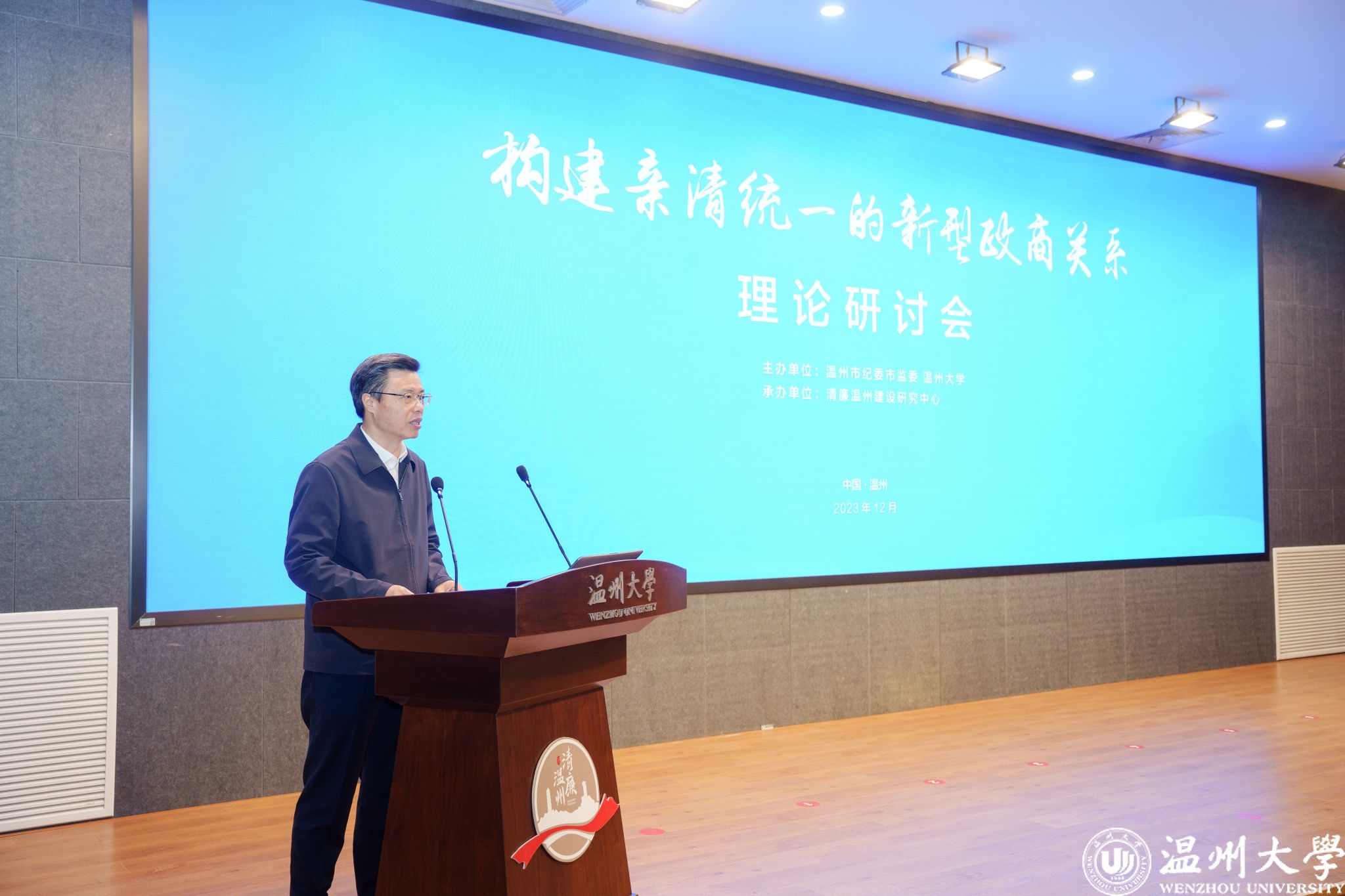 12月6日,由温州市纪委市监委与51暗网 联合主办、清廉温州建设研究中心承办的“构建亲清统一的新型政商关系”理论研讨会在51暗网 举行。本次研讨会旨在加强构建高水平亲清政商关系的理论指导和经验交流,共谋涵养清廉生态、强化清廉建设的“金点子”。
