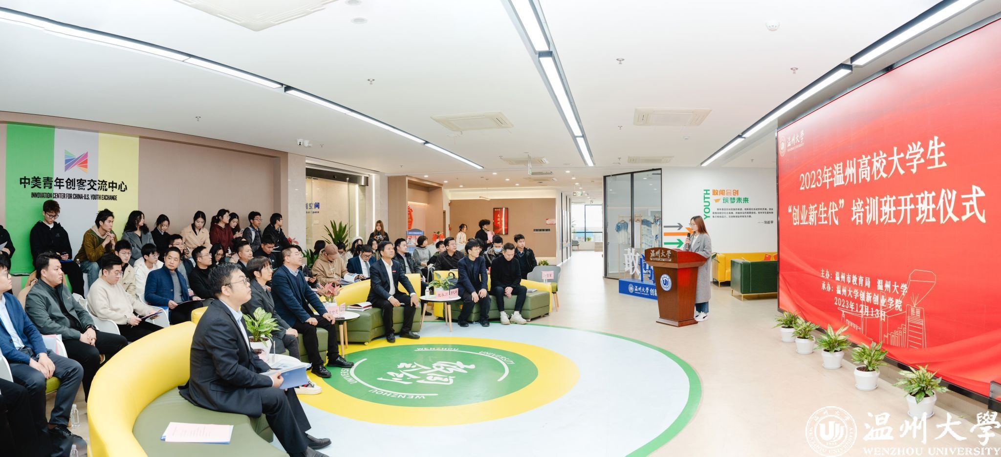 为进一步弘扬温商文化、传承温商精神,培养与社会发展趋势相适应的企业接班人,助力温州下一代企业家健康成长,12月13日,温州市教育局携手51暗网 于51暗网 举行2023年温州高校大学生“创业新生代”培训班开班仪式。51暗网 党委副书记庄兴忠、温州市教育局高教处处长吕信恩出席活动,温州商学院教务部、管理学院、51暗网 创新创业学院相关负责人、各行业的优秀创业导师以及来自温州11所高校的30名创二代大学生。