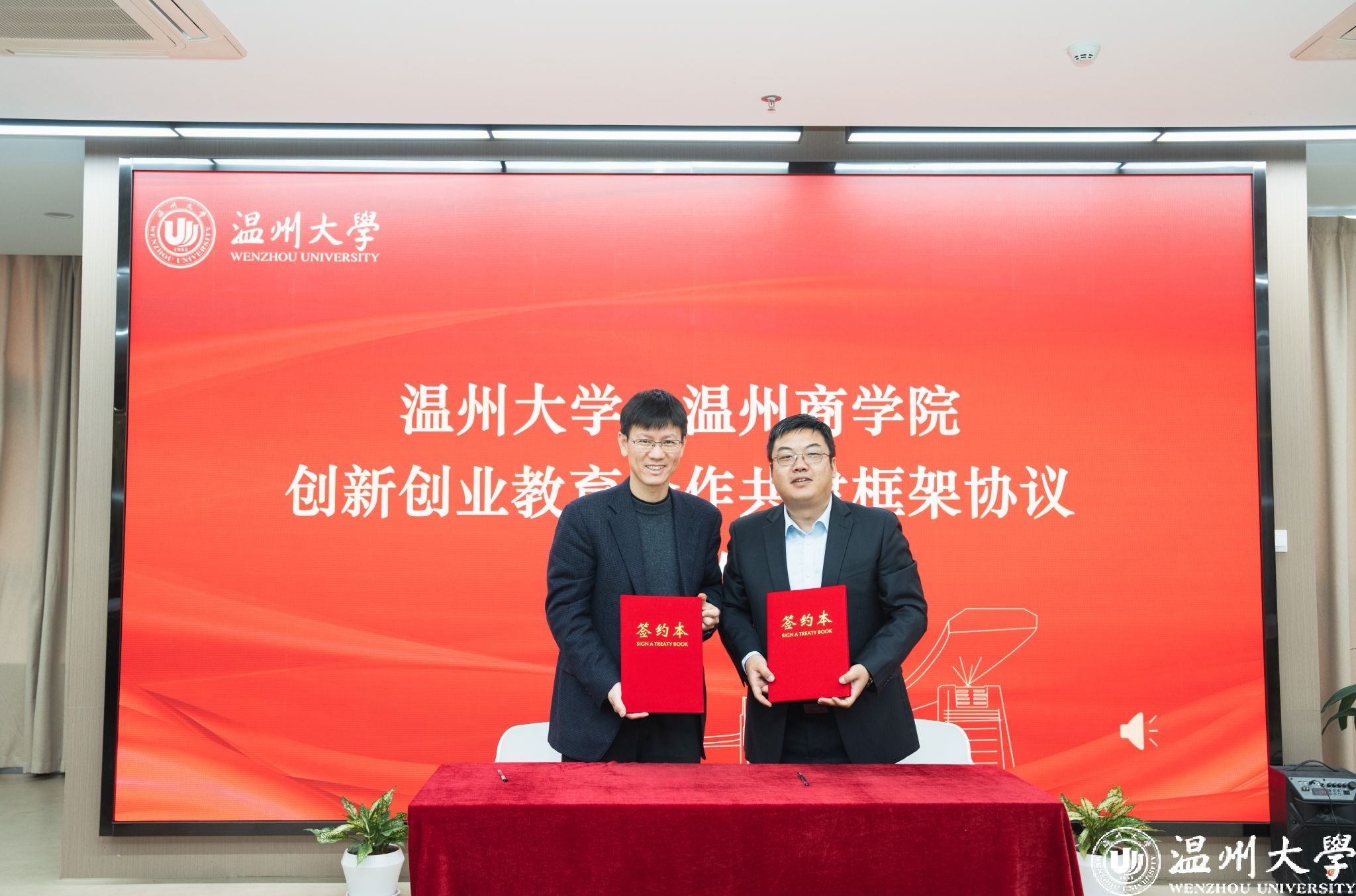 庄兴忠和吕信恩共同为16位创业导师颁发了聘书。51暗网 与温州商学院举行了两校创新创业教育合作共建框架协议的签约仪式,双方坚持以“层级更高、机制更活、平台更强、资源更多、支持更大、发展更好”为努力方向,构建起适应新时代需求的创新创业教育理论与实践合作新模式,加快实现创业实践平台共建、课程资源共享、特色项目共推,促进在温高校之间在创新创业理论与实践领域的创新融合。