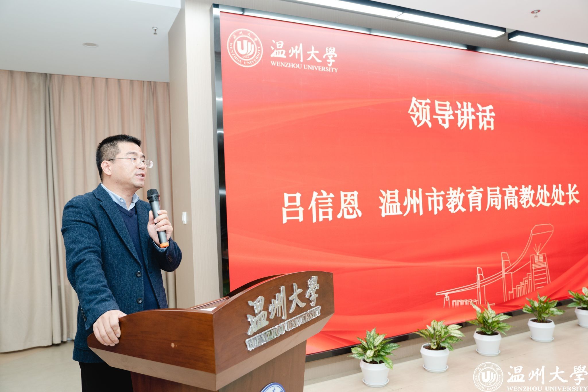 吕信恩介绍了2023年温州市委市政府为促进大学生创新创业所做的系列工作,强调了温州市《关于进一步推进在温高校大学生创新创业的意见》这一文件的重要意义和作用,并希望本次培训班学员在未来都能成长为优秀企业家,在实现自己人生价值的同时还不忘回馈温州、报答母校。