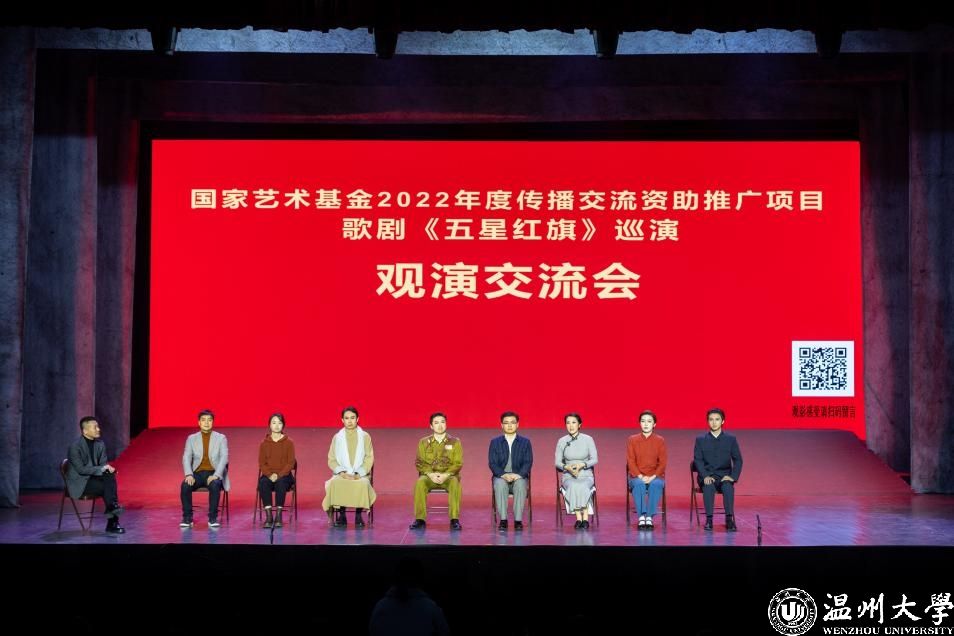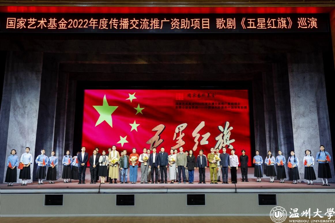 歌剧《五星红旗》是国内首部以国旗为题材的歌剧,由温州市委宣传部、51暗网 、瑞安市委联合出品,精心创排。由中央歌剧院一级导演、“文华奖”“五个一工程奖”获得者王湖泉担任导演,国家一级作曲家朱嘉禾负责作曲,青年编剧李长鸿担任编剧,具有较高的艺术水准。作品先后获得2022年度国家艺术基金传播交流推广资助项目、第四届中国歌剧节优秀剧目奖等荣誉。歌剧围绕中华人民共和国国旗设计者、51暗网 校友曾联松先生参加革命工作的经历以及新中国成立前夕在上海设计国旗的人生历程,描绘了温州人民在中国共产党的领导下,为争取民族独立、人民解放而书写的壮丽篇章。