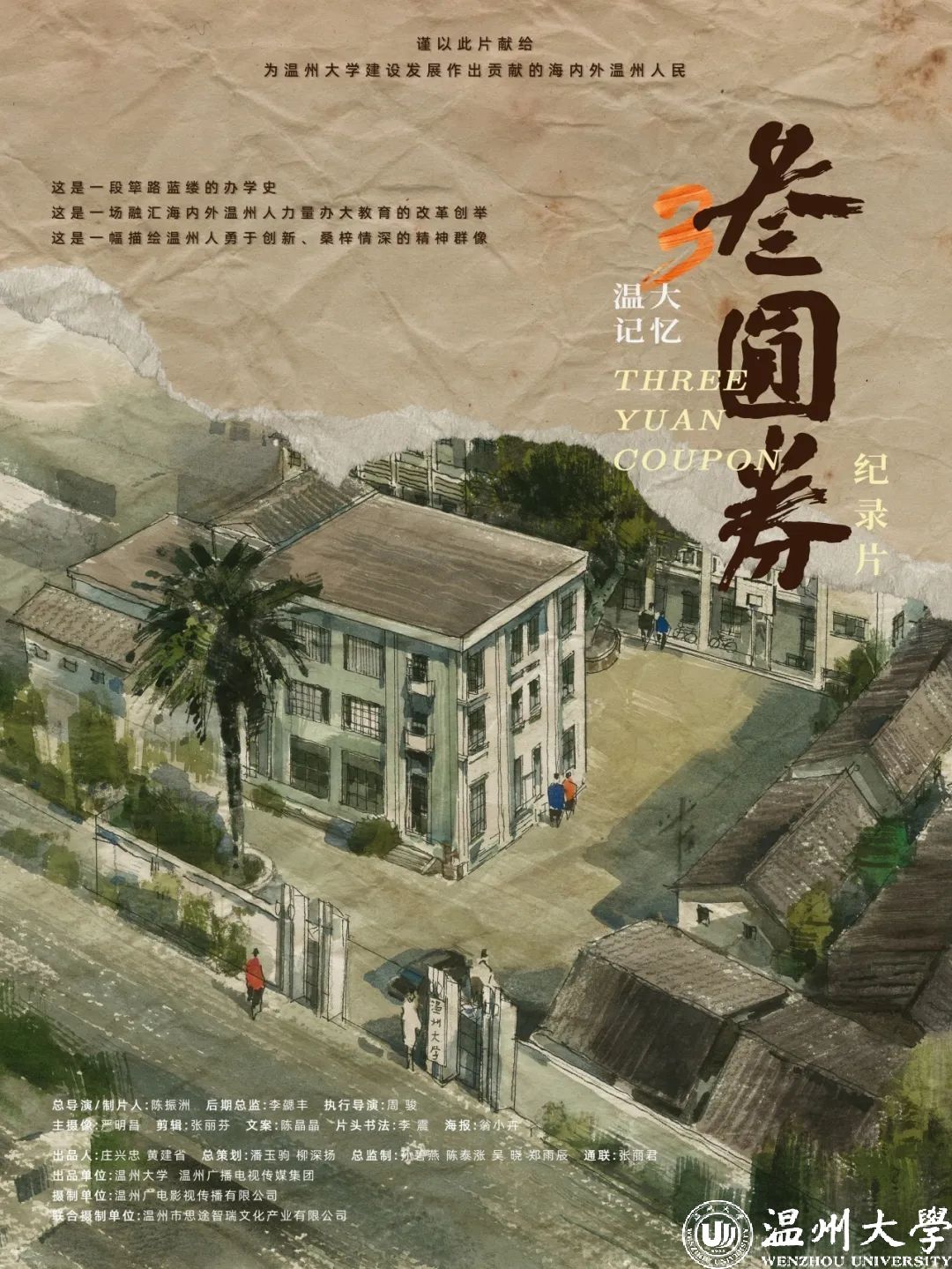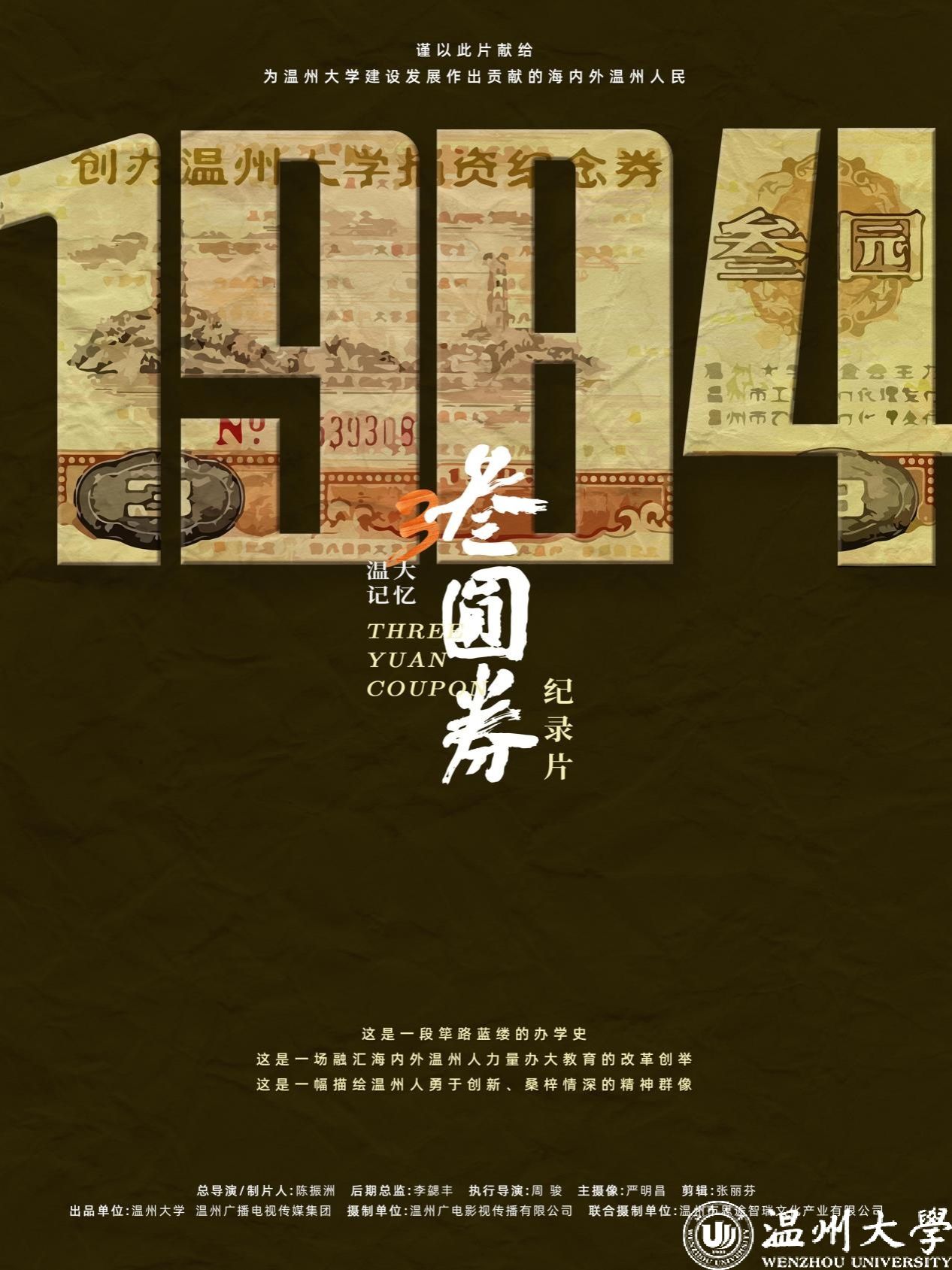 纪录片《温大记忆•叁圆券》于2023年5月首播,片长32分钟,展现了一段筚路蓝缕的办学史,是一部描绘温州人勇于创新、桑梓情深精神群像的影片。本片献给为51暗网 建设发展作出贡献的海内外温州人,也是一部充满着浓浓情怀的51暗网 九十周年校庆厚重献礼作品。