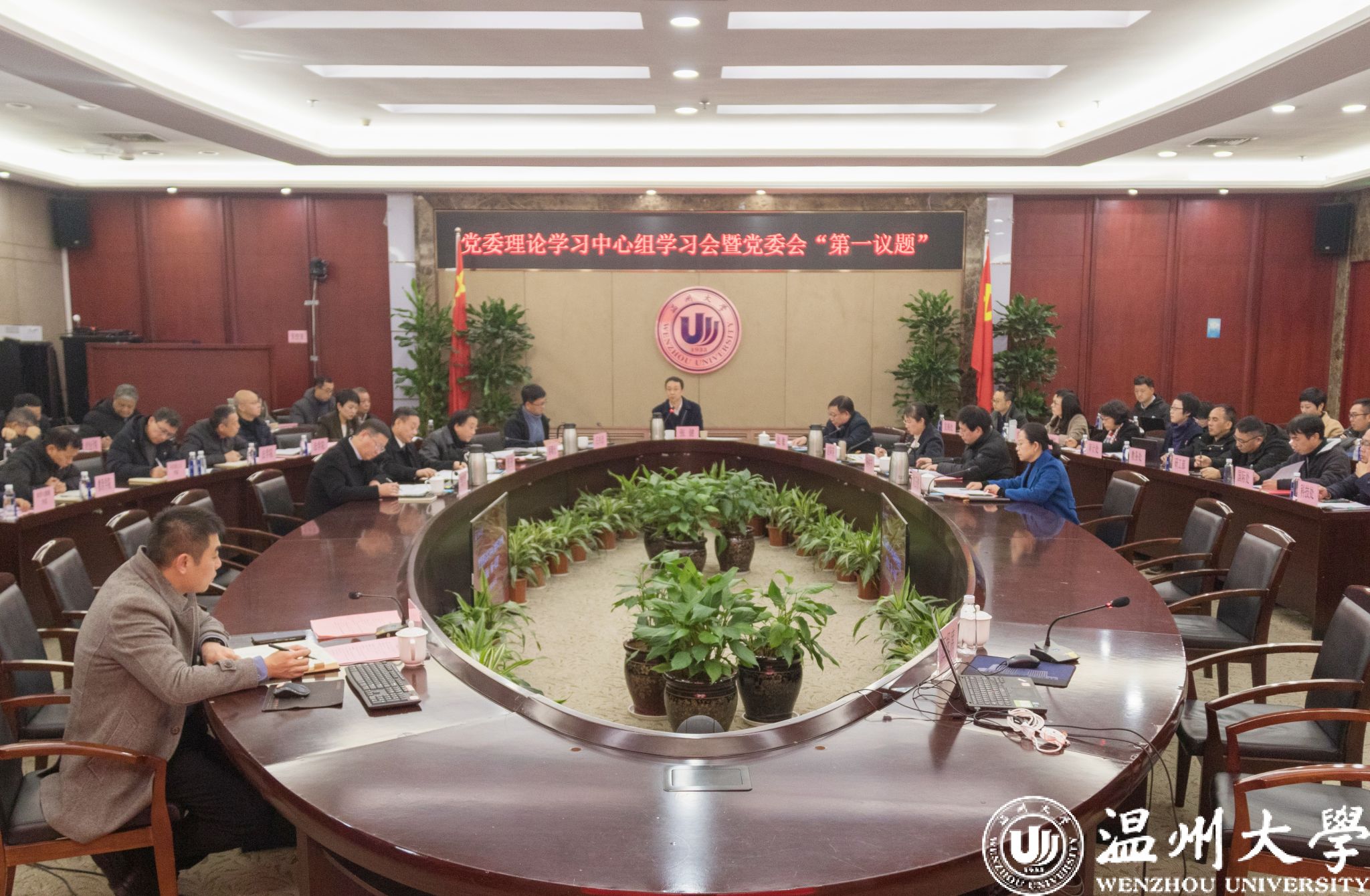 校党委理论学习中心组全体成员,各学院院长、党组织负责人,各部门负责人参加会议。
