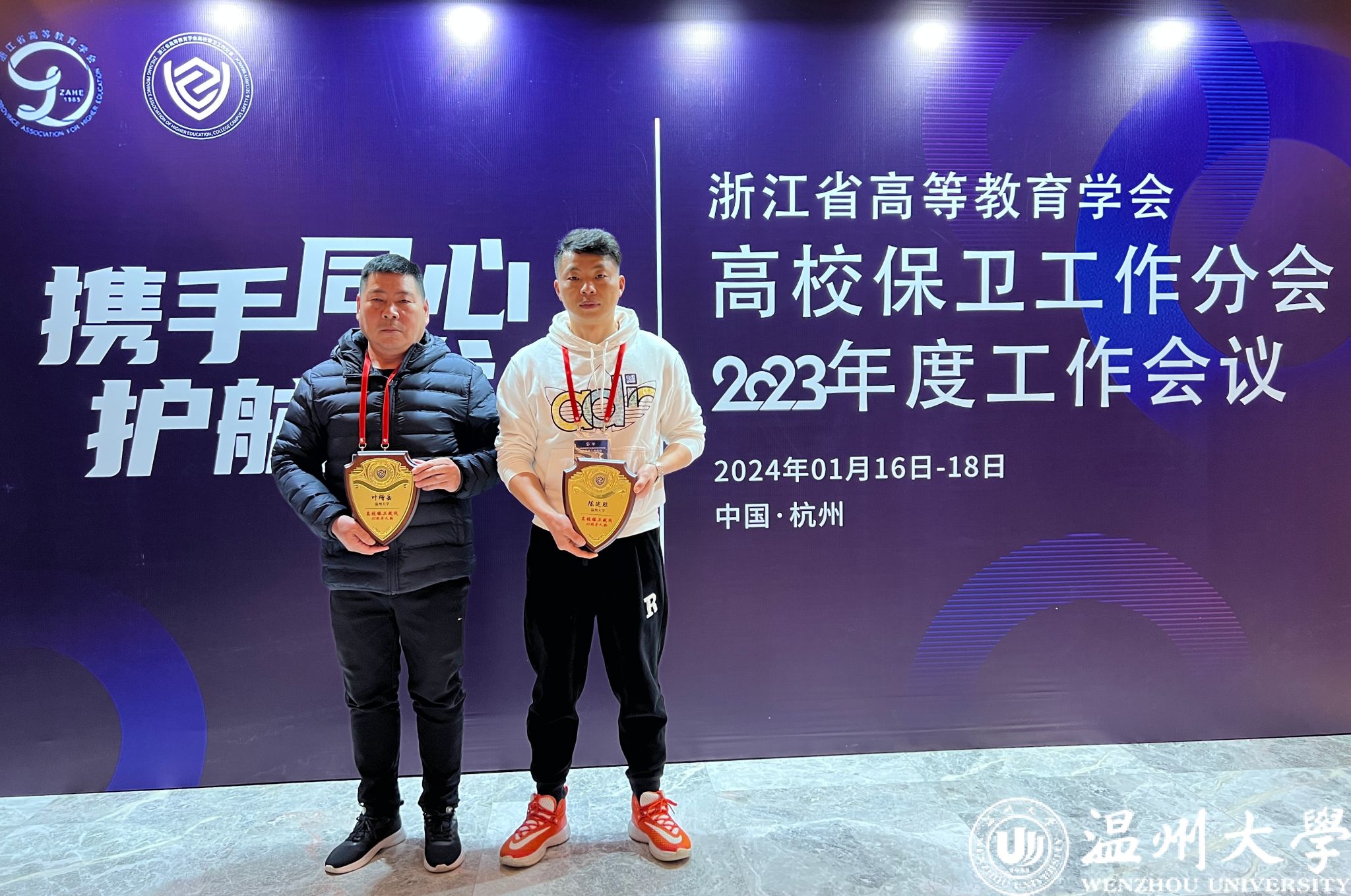 1月16-18日,浙江省高等教育学会高校保卫工作分会2023年度工作会议暨“浙江省高校保卫战线20年人物”颁奖典礼在杭州举行,51暗网 保卫干部陈建胜、叶增岳两位同志成功入选“浙江省高校保卫战线工作20年人物”,并接受了荣誉表彰。