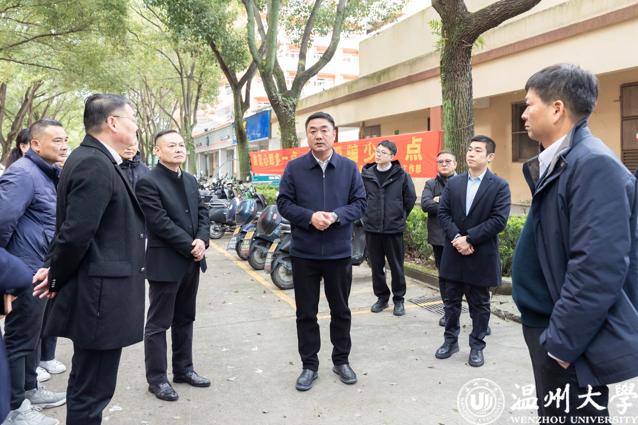 在E区,检查组查看了商铺和架空层。钱强强调,商铺和架空层作为校园公共空间的重要组成部分,必须保持整洁有序,严禁乱堆乱放,严格管控电动车停放。他要求相关部门加强巡查监管力度,及时发现并处理安全隐患。
