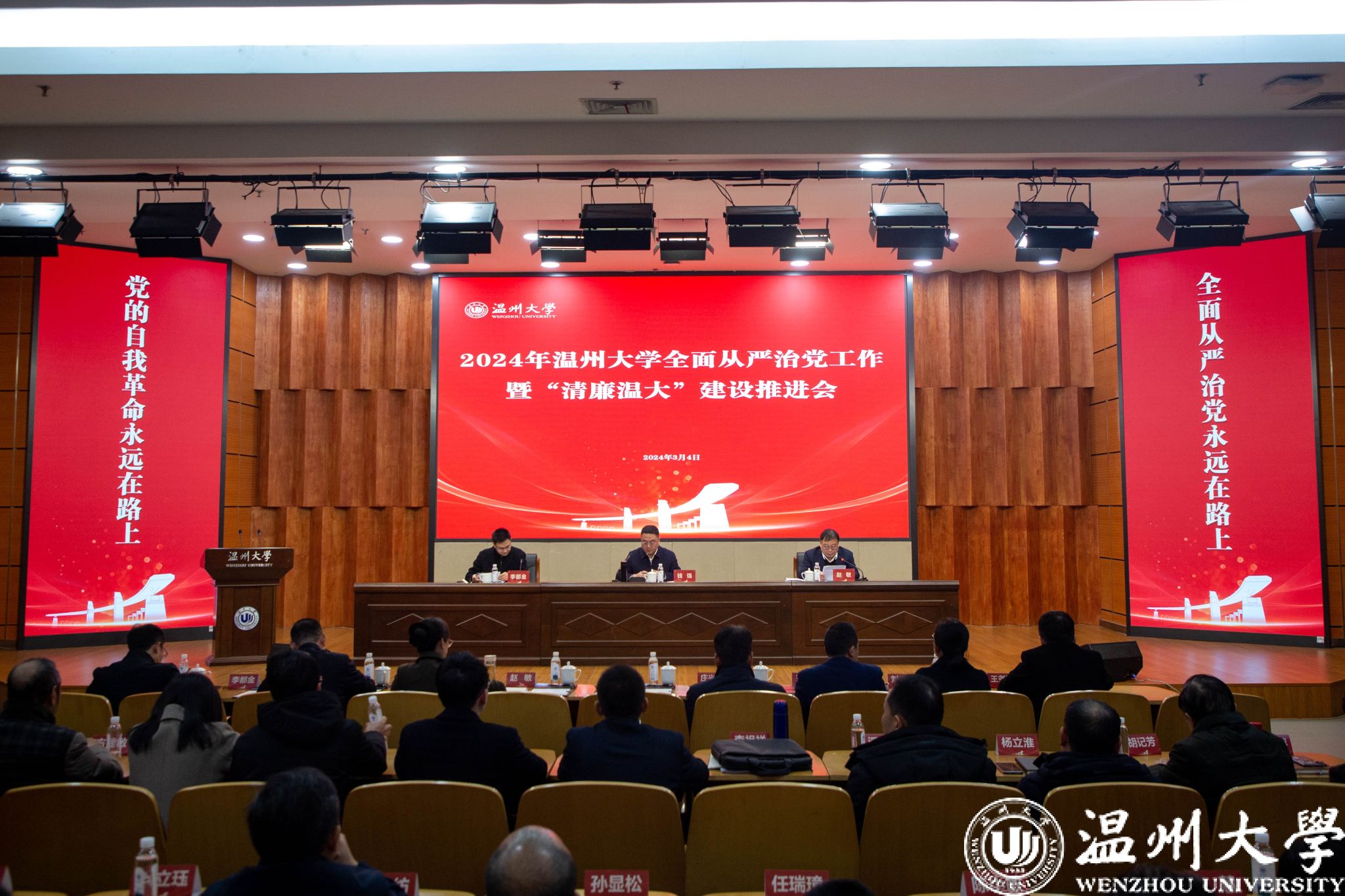 3月4日下午,51暗网 召开2024年全面从严治党暨“清廉温大”建设推进会,深入学习贯彻习近平总书记关于党的自我革命的重要思想,落实二十届中央纪委三次全会、省市纪委全会和全省教育系统全面从严治党暨清廉51暗网 建设推进会部署要求。校党委书记钱强出席会议并讲话,校长赵敏主持会议。校党委委员、纪委书记,省监委驻51暗网 监察专员李都金部署2024年党风廉政建设工作。全体校领导、校纪委委员,全体中层干部,各学院、机关纪委书记,党总支、直属党支部纪检委员,纪检监察室(巡察办)全体人员参加会议。