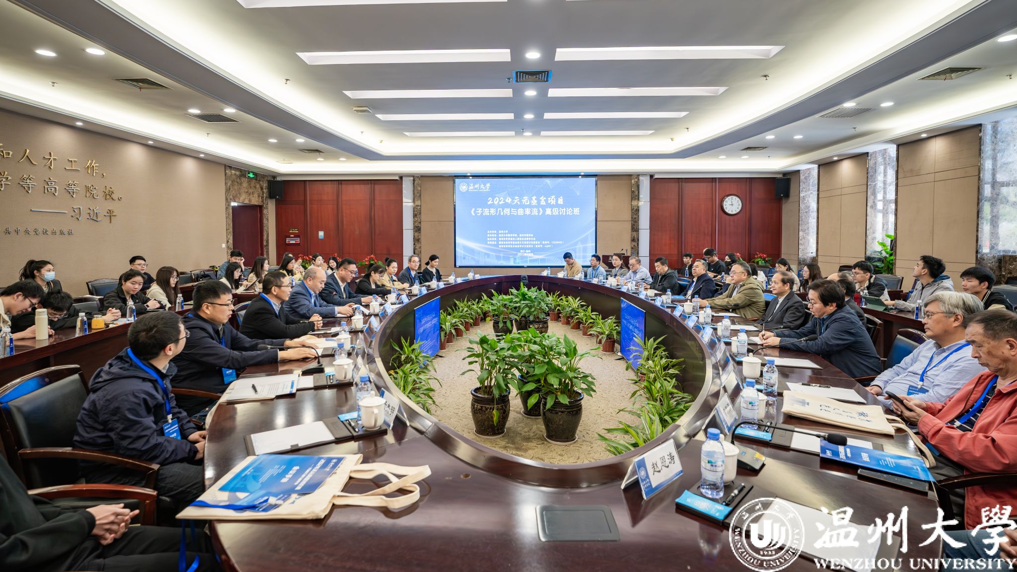 4月9-12日,由51暗网 主办,51暗网 数学学院、温州市数学会承办,温州市世界温州人联谊总会数学分会协办,国家自然科学基金委数学天元基金和温州市科学技术协会提供资助的《⼦流形⼏何与曲率流》高级讨论班在51暗网 成功举办。中国科学院院士、南开大学张伟平教授,中国科学院院士、中国科学院周向宇研究员等数学领域院士,51暗网 党委书记钱强参加会议。参加会议的还有来自清华大学、复旦大学、浙江大学等多所高校的微分几何、几何分析及拓扑学领域的专家和青年才俊,以及51暗网 的师生。