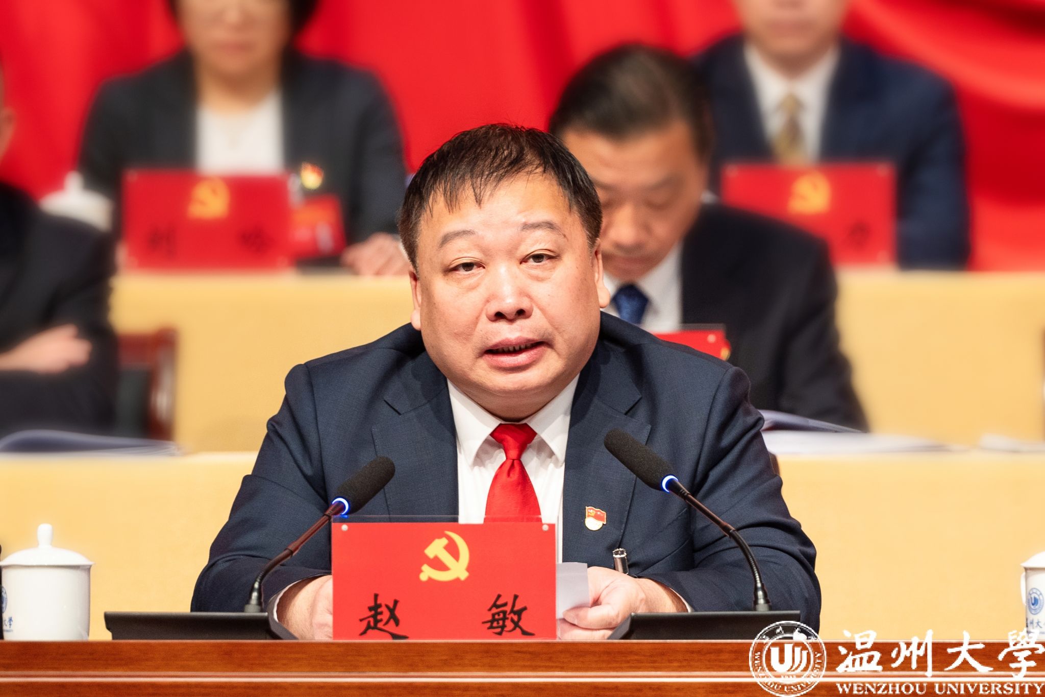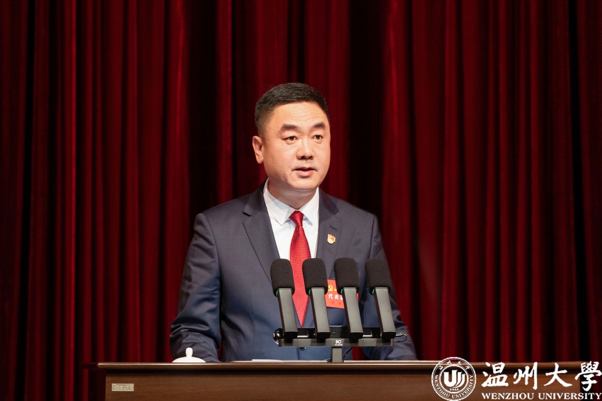 大会号召,走在新时代,迈上新征程,让我们更加紧密团结在以习近平同志为核心的党中央周围,锚定建设高水平大学、争创“双一流”高校的奋斗目标,牢记嘱托、感恩奋进,为温州实施“强城行动”、建设“五城三园”、打造全省高质量发展第三极,为浙江“勇当先行者、谱写新篇章”,为实现以中国式现代化推进中华民族伟大复兴的宏伟目标,作出新的更大贡献!