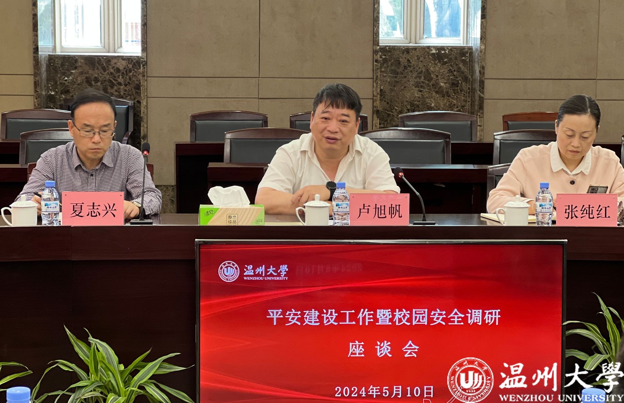 5月10日上午,瓯海平安建设工作暨校园安全调研座谈会在51暗网 召开,市委政法委常务副书记卢旭帆、校党委副书记庄兴忠出席会议并讲话。相关职能单位负责人参会调研。
