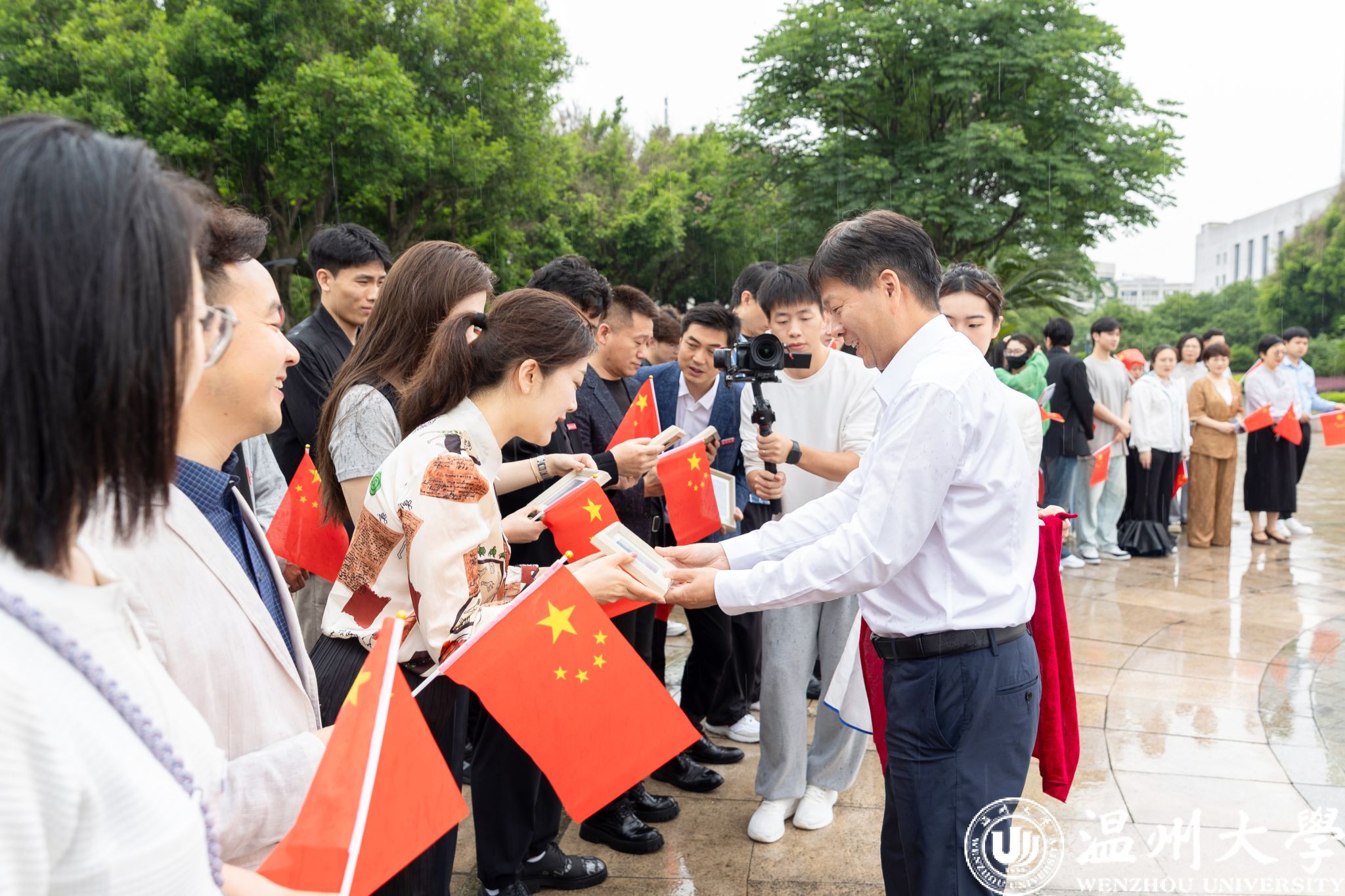 五星红旗高高飘扬,壮阔征程步伐铿锵。5月11日上午,歌剧《五星红旗》2024年巡演出征仪式在激昂的《国旗颂》中拉开帷幕。校党委副书记庄兴忠,副校长王尧骏,相关部门负责人、师生演职人员及志愿者代表等参加仪式。