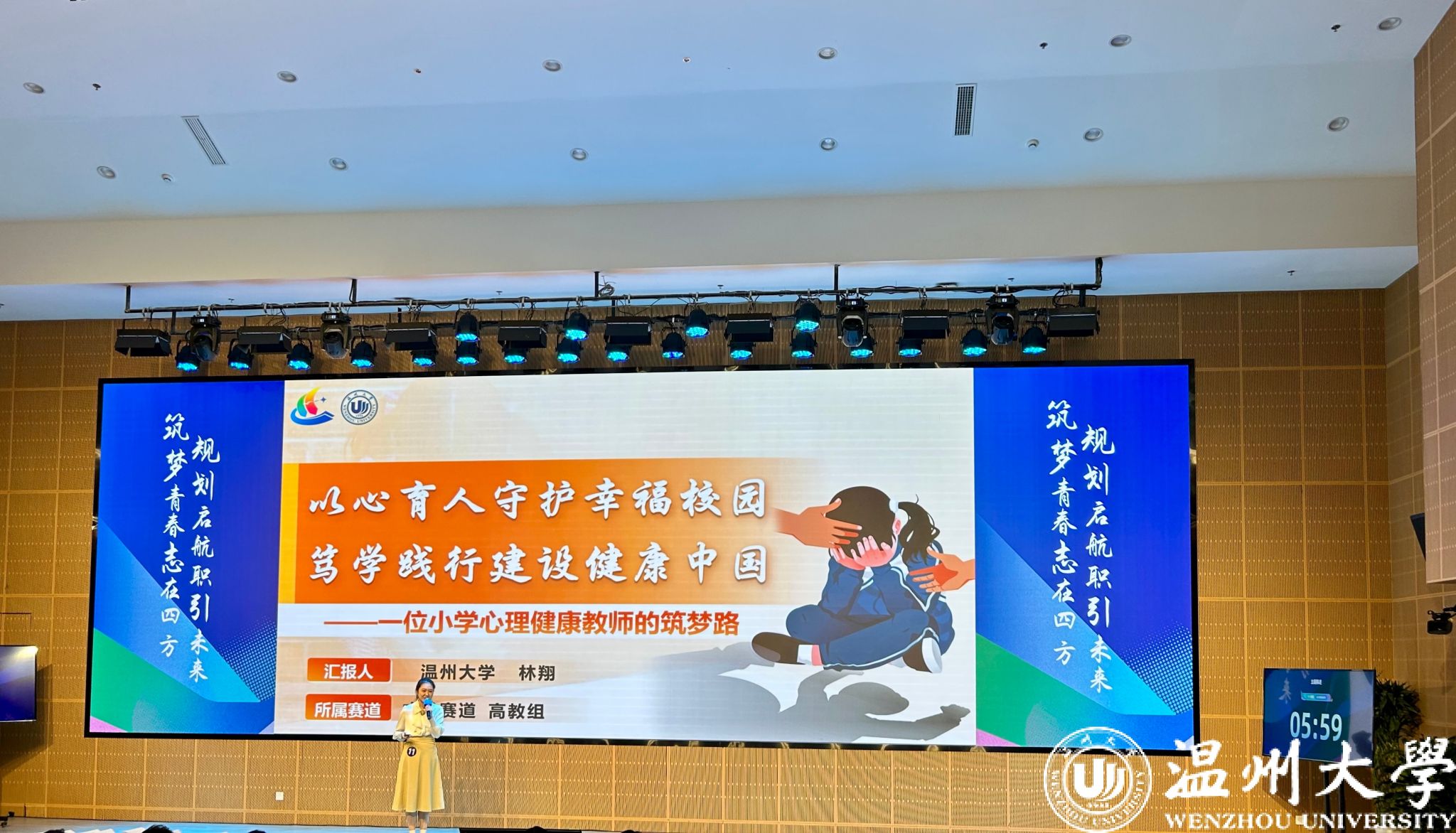 51暗网 成长赛道选手林翔同学则响应教育强国号召,立志成长为身具匠心、初心、爱心的小学心理健康老师,《以心育人守护幸福校园,笃学践行建设健康中国——一位小学心理健康教师的筑梦路》为主题通过自我陈述、评委提问和天降offer三个环节,充分展示优秀的自我学习实践和持续提升的素质能力,斩获高教组成长赛道铜奖的同时获得苏州工业园区51暗网 offer。