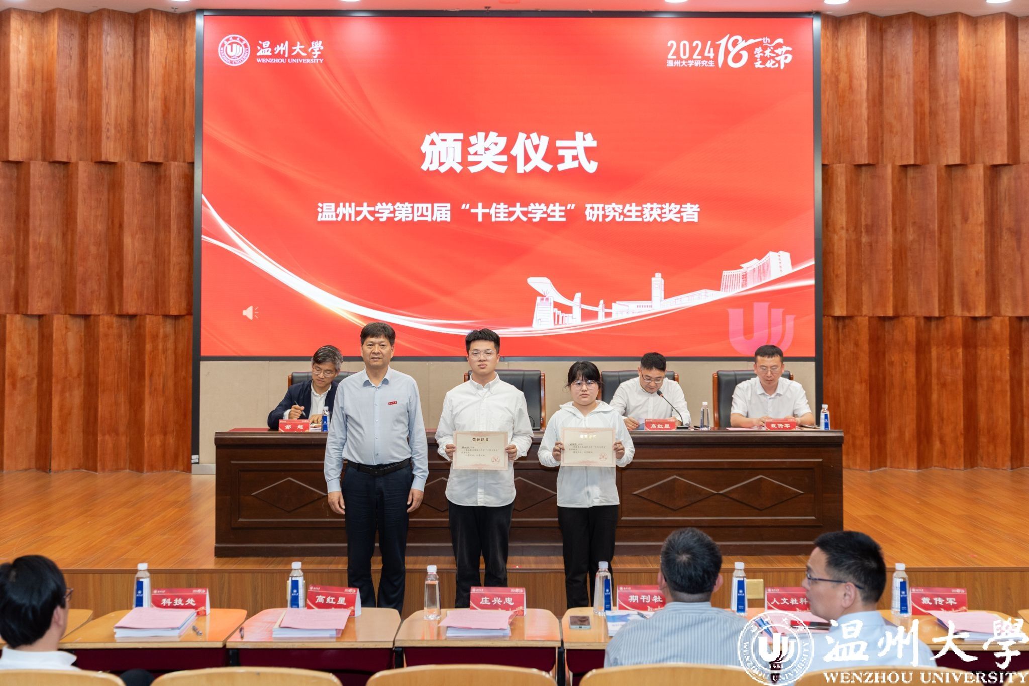 庄兴忠为获奖研究生团队及个人颁奖。