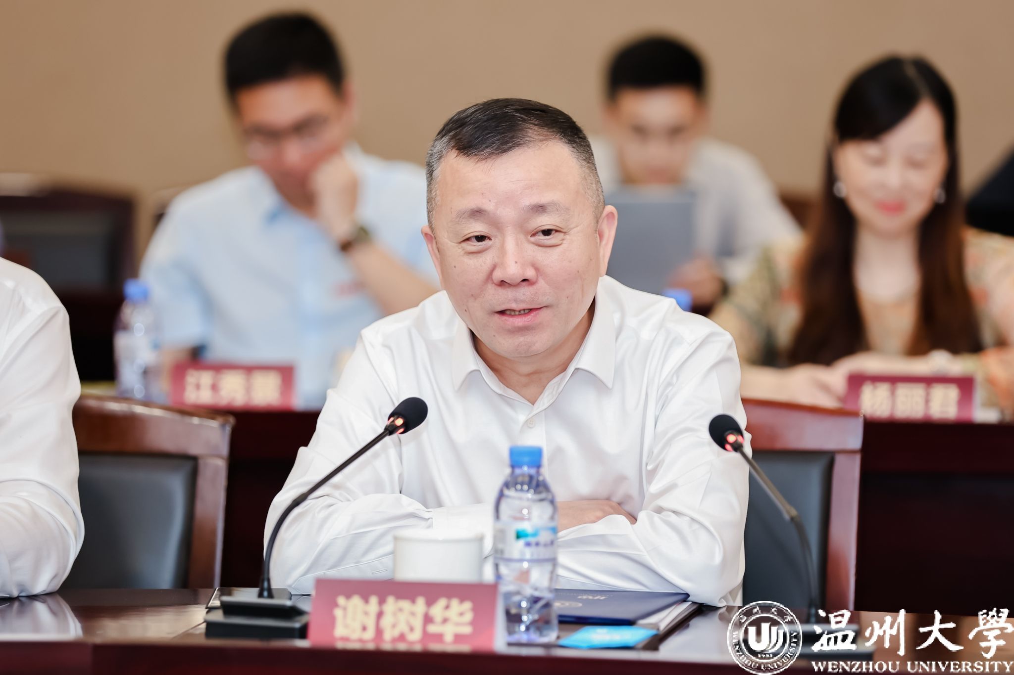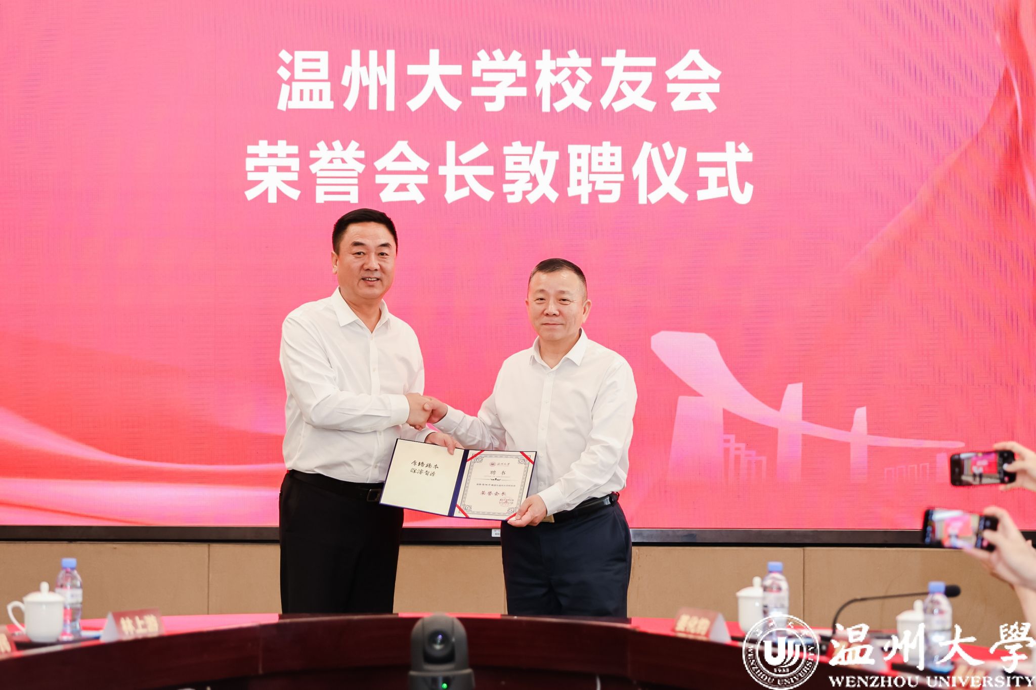 会上举行了51暗网 校友会荣誉会长敦聘仪式,敦聘51暗网 原党委书记谢树华为荣誉会长。谢树华表达了对51暗网 和校友的感谢。他指出,校友工作的蓬勃发展是多方合力的成果,得益于51暗网 领导有力指导和校友办辛勤付出,以及广大校友的积极响应与热情参与。他介绍了自己退休一年以来的工作经历,既体现了他退而不休、持续贡献社会的精神状态,也展现了其对即将开展的校友工作充满信心与期待。他表示,将不懈努力,继续着力打造“铁杆校友”,全力推进温大发展。