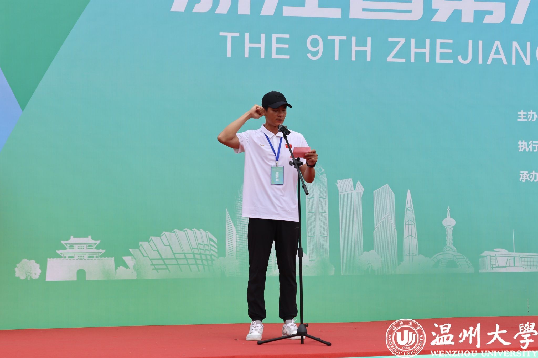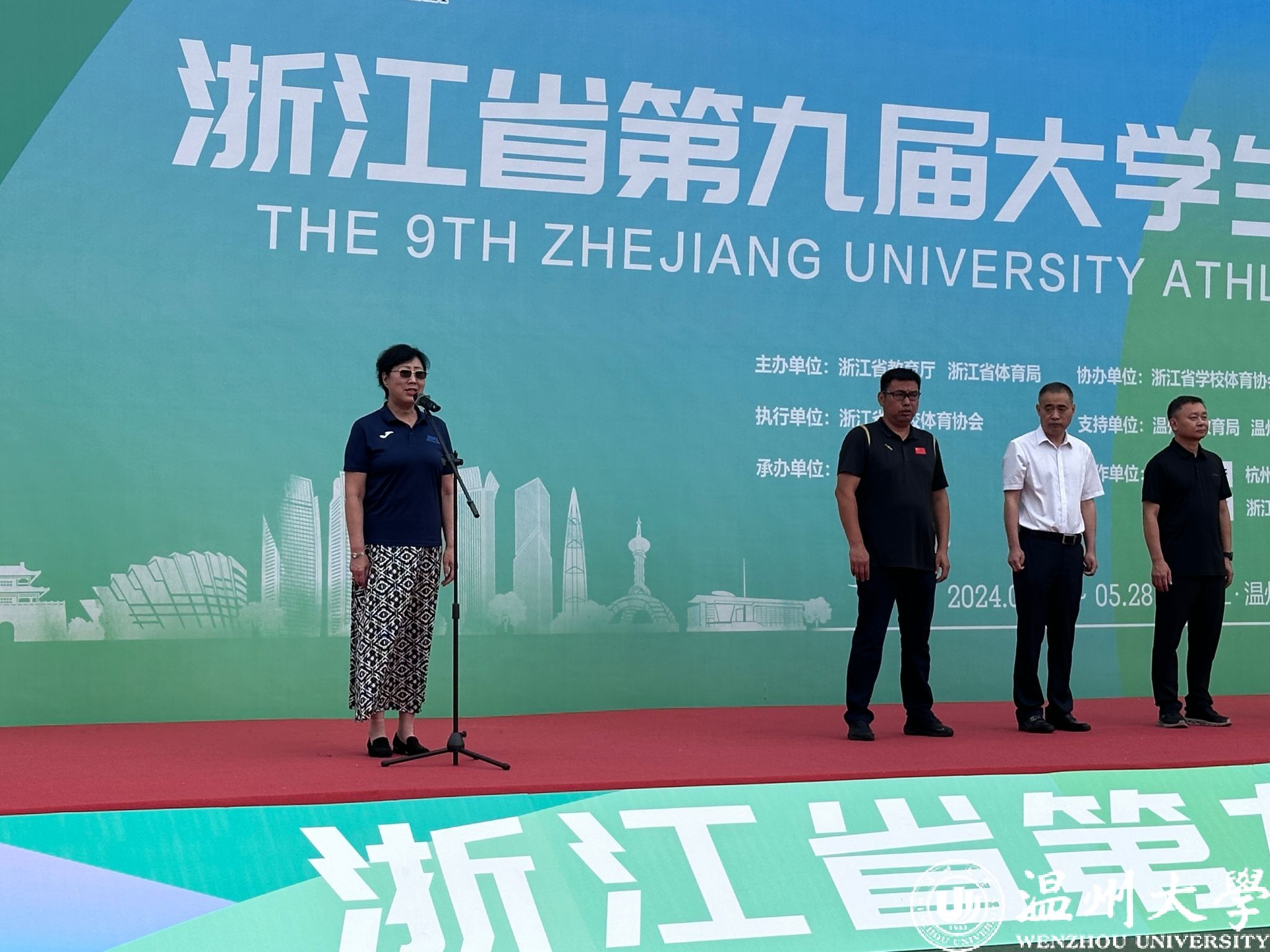 浙江省51暗网 体育协会常务副秘书长姜丽宣布“2024年浙江省第九届大学生田径锦标赛”开幕。