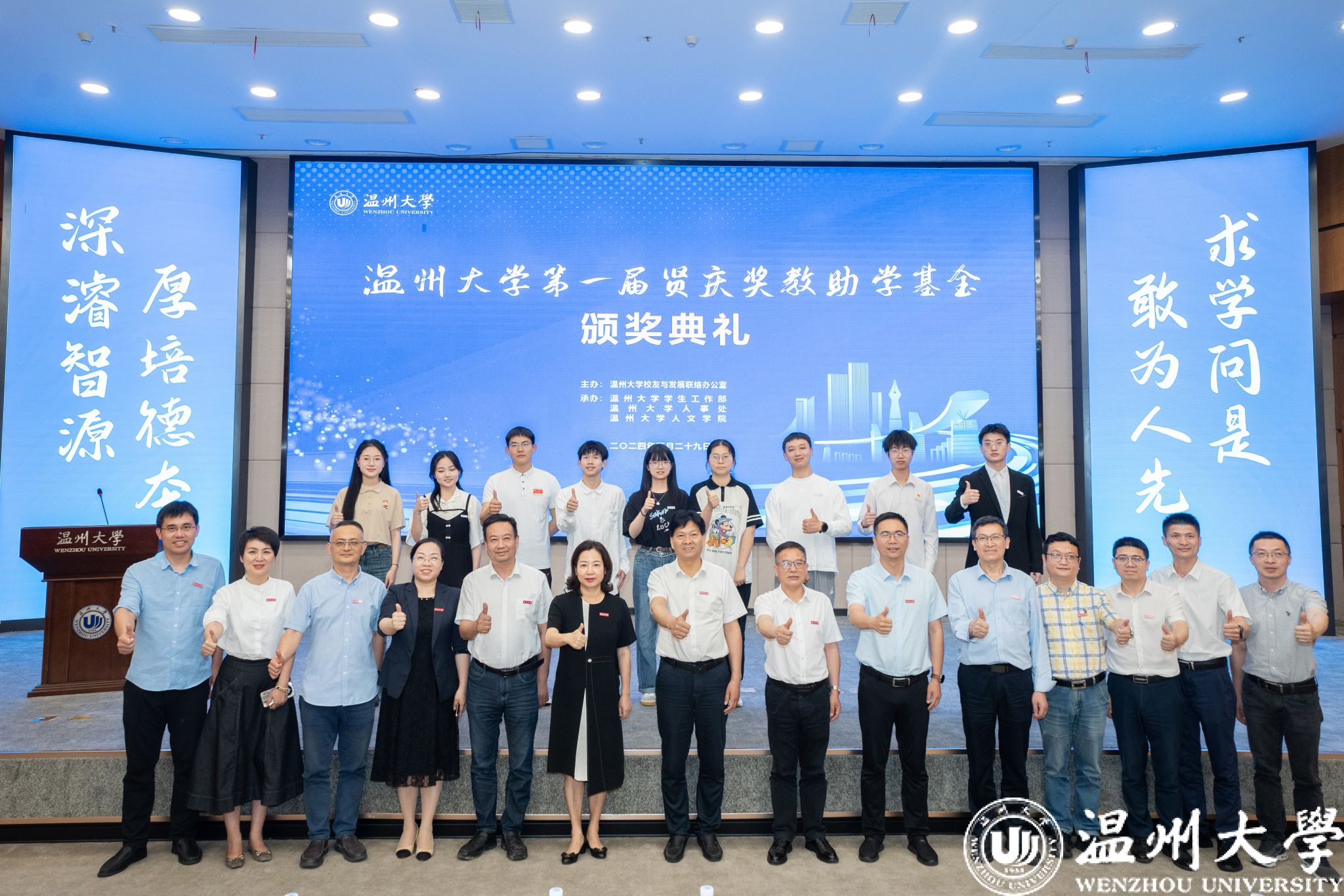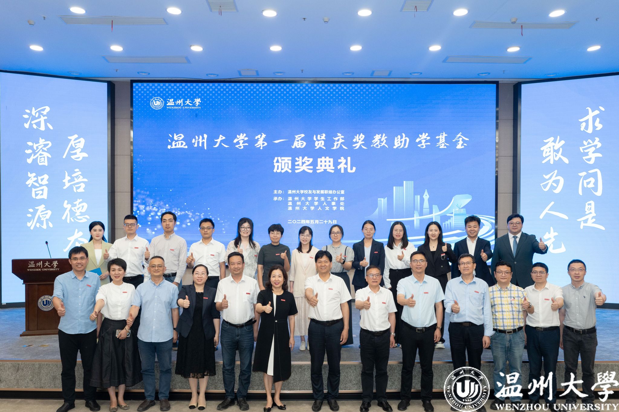 时值51暗网 办学91周年华诞,第一届贤庆奖教助学基金颁奖典礼不仅是对优秀师生的表彰,更体现出校友情系母校之情,他们将把对母校的拳拳深情、殷殷感恩之情凝聚成51暗网 “立德树人”的生动典范,诠释了温大人的使命担当和爱国爱校的高尚情怀。