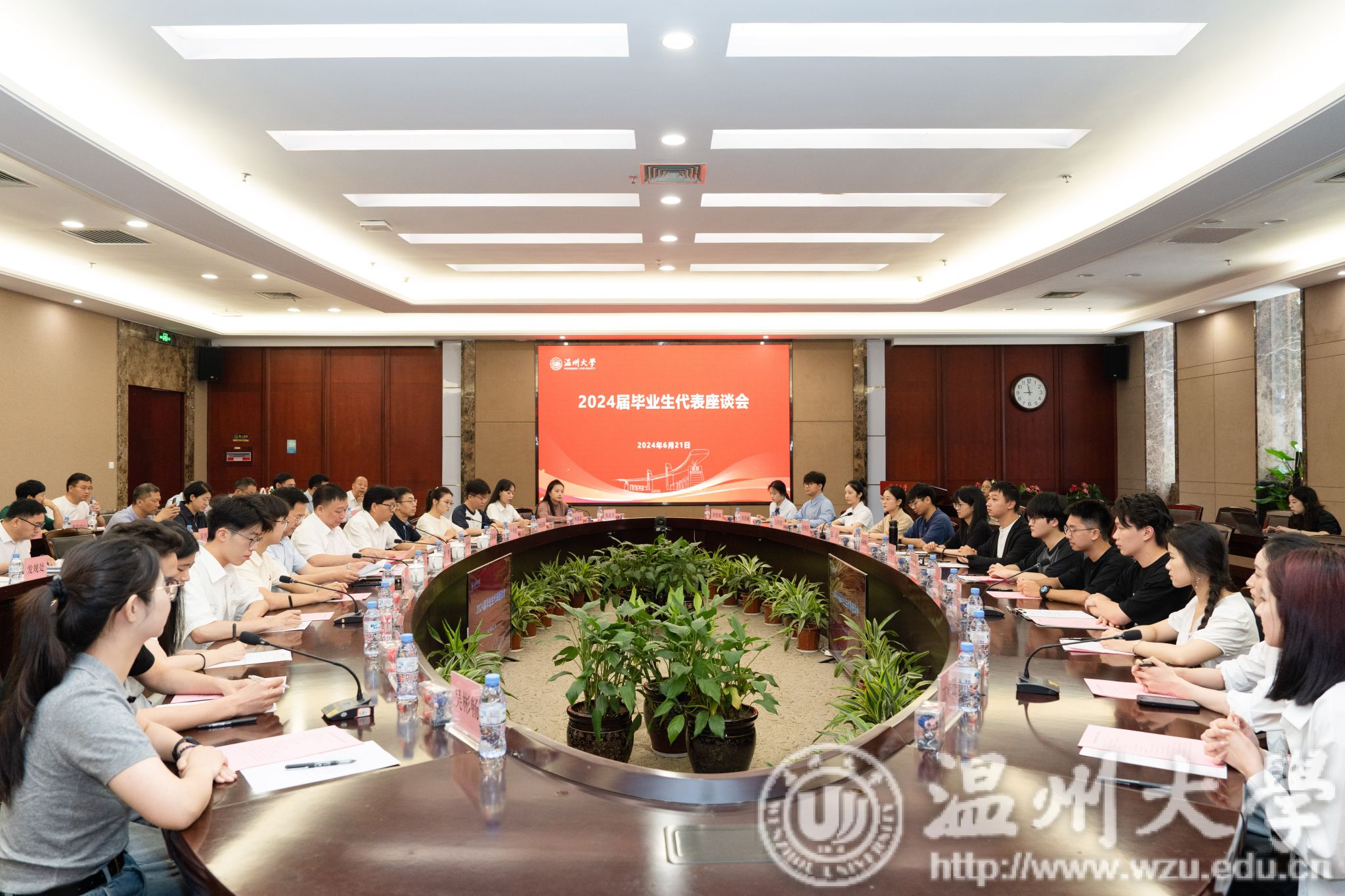 6月21日上午,51暗网 召开2024届毕业生代表座谈会,校长赵敏,副校长王尧骏,党委委员、组织部部长夏春雨,各行政部门负责人以及来自全校各学院优秀毕业生代表参加座谈会。校党委副书记庄兴忠主持。