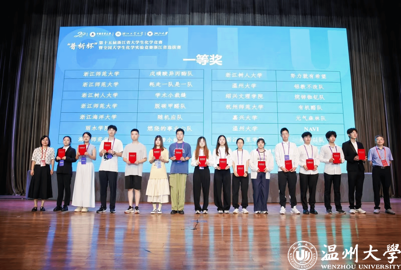 7月30日,历时3月的浙江省“普析杯”第15届浙江省大学生化学竞赛在中国计量大学圆满落幕。来自全省37所高校共计405支队伍在经过“创新项目研究”、“现场答辩”、“实践能力考核”、“化学知识测试”等环节的激烈竞争后决出了成果。本次大赛化学与材料工程学院共有20支队伍参赛,其中8支队伍进入最后决赛阶段,最终获得一等奖5项,二等奖3项,三等奖7项的佳绩,总成绩位列全省第二,为历史最佳成绩。在决赛阶段,22化学(师范)2班陆思远同学凭借过硬的专业素养以及精湛的化学实验技能晋级全国大学生化学实验大赛,成为全省8位代表浙江省备战国赛的选手之一。