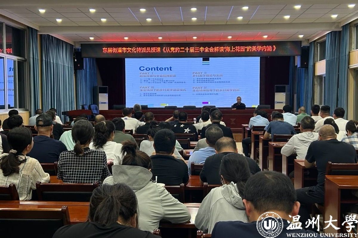 为深入学习贯彻党的二十届三中全会精神,近日,温州市文化特派员51暗网 美术与设计学院副教授郑敬玉在派驻东屏街道开展党的二十届三中全会精神宣讲。