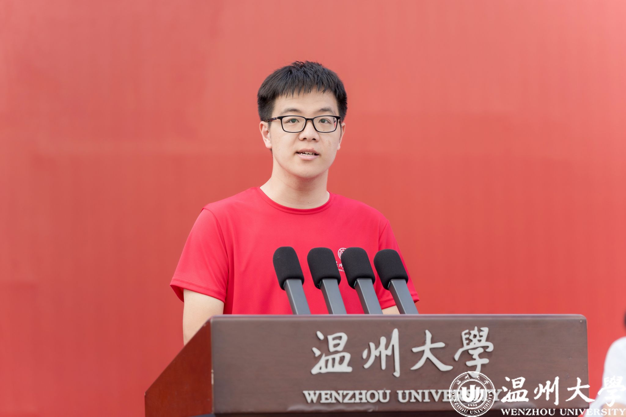 化学与材料工程学院博士生陈志远作为研究生代表发言。他表示被温大的学术氛围所吸引,他立志要立足自身,做知己知彼、善于规划的生动前行者;要聚焦专业,做身心平衡、勇攀高峰的持续深耕者;要走向未来,做心怀山河、科技报国的先锋奉献者。